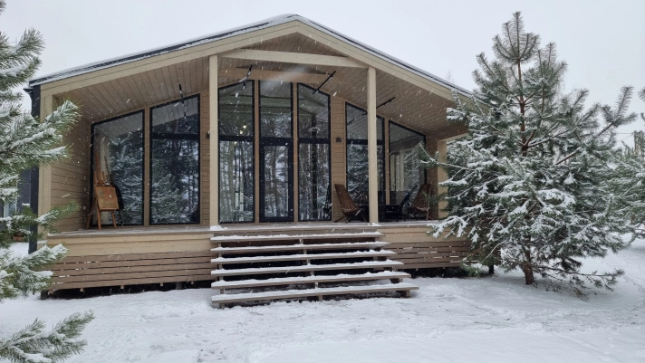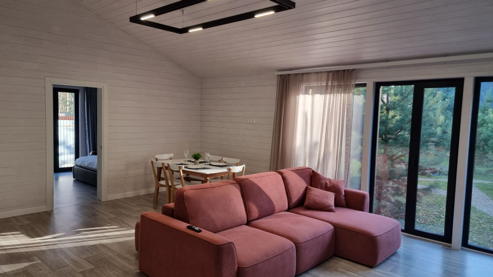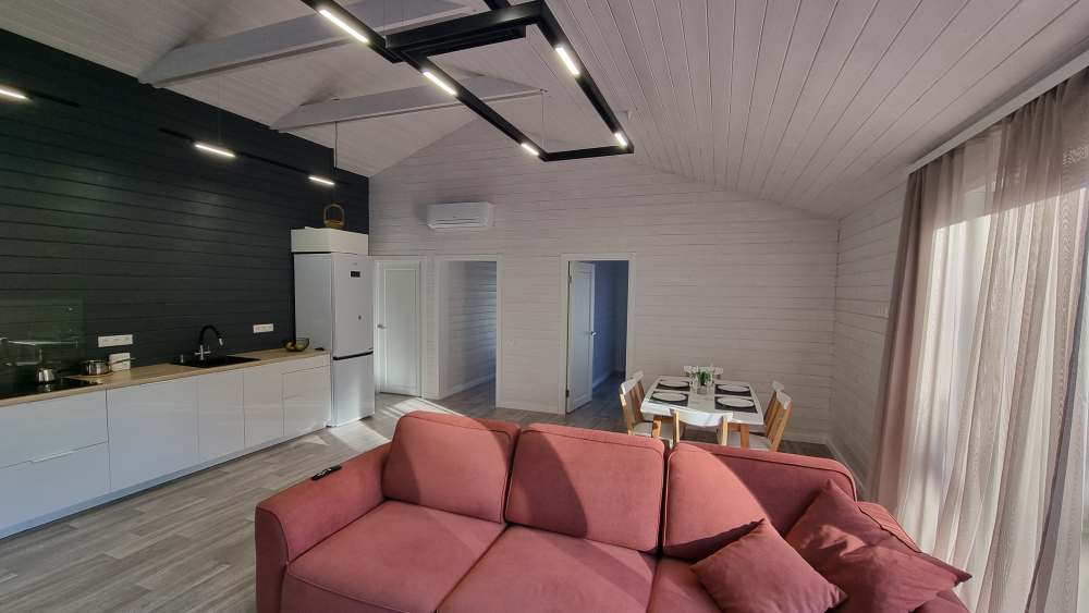 Добро пожаловать в стильный и полностью обустроенный дом, созданный для семейного отдыха и романтических вечеров. Барнхаус расположен в живописном месте с панорамными календарями на водохранилище, лесом и звёздным небом.