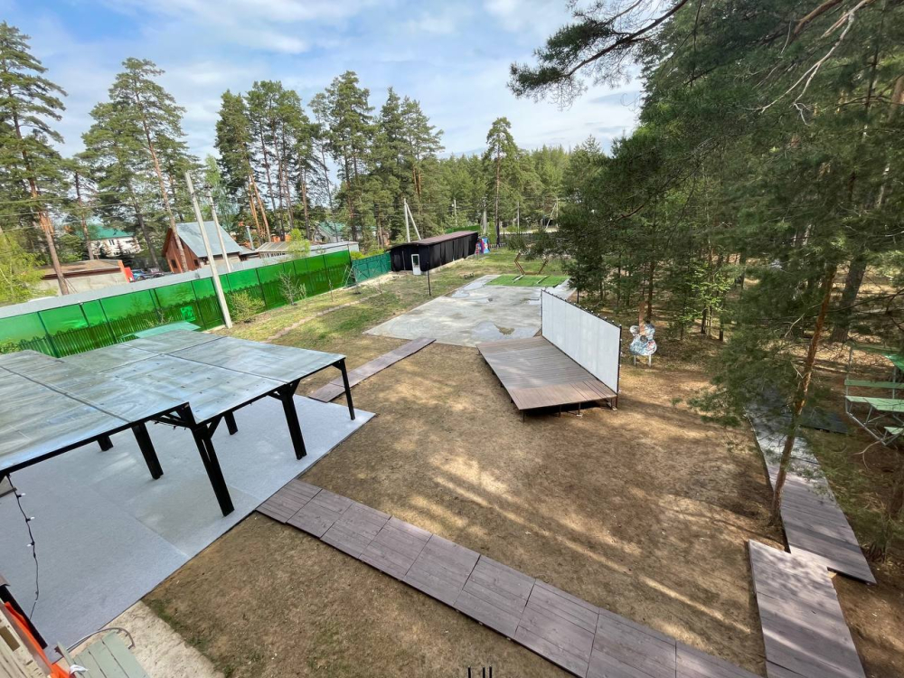 - Оборудованы волейбольная и баскетбольная площадки, уличная сцена для спортивных сборов, семинаров и соревнований