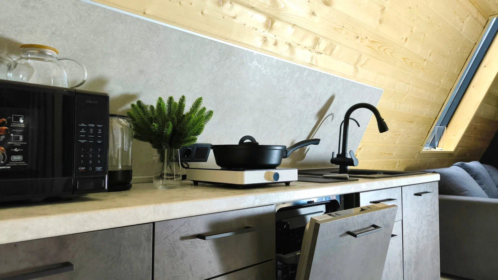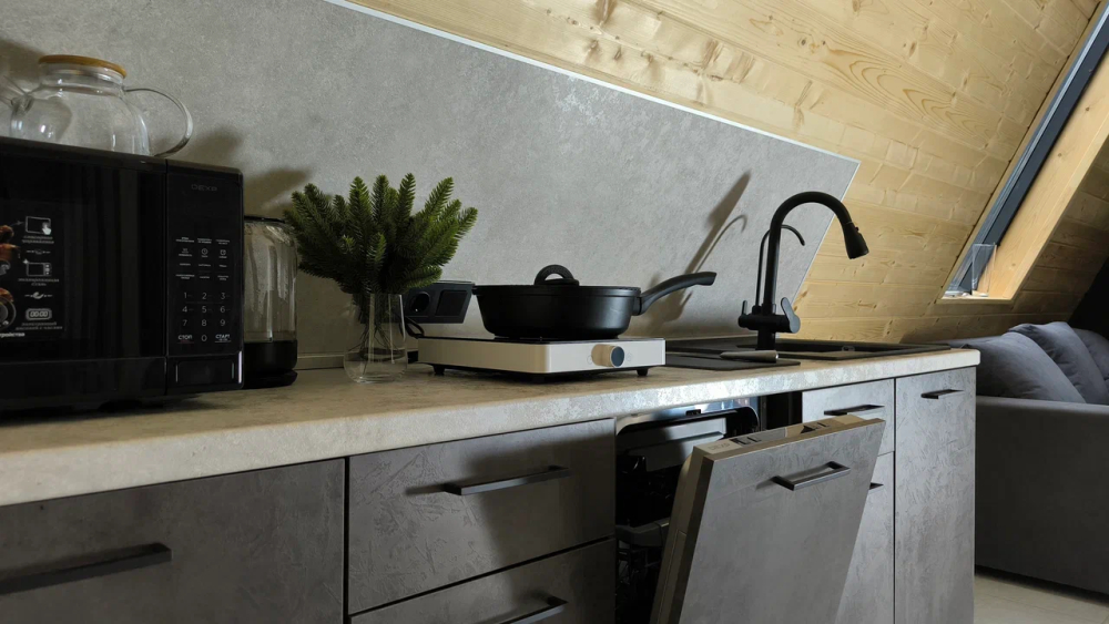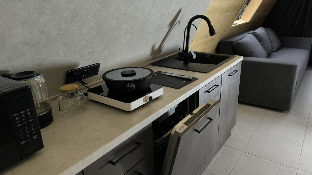 · Кухня: Микроволновая печь, индукционная плита, чайник, холодильник, посудомоечная машина, набор посуды, чай, сахар, соль.