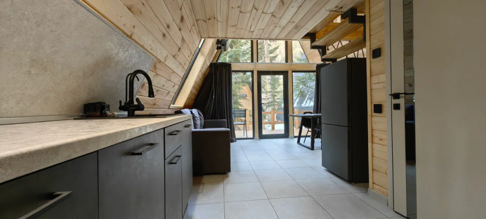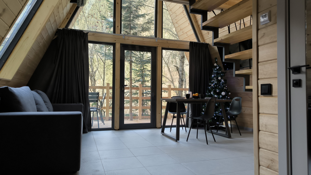 Мы рады предложить вам уникальный отдых в стильных двухэтажных коттеджах на берегу реки, всего в 5 минутах езды от горнолыжных склонов и в пешей доступности от Софийской поляны.