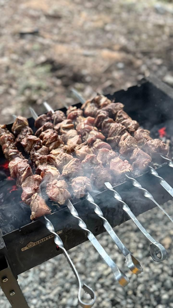 Зона барбекю с мангалом (решетка и шампуры предоставляются бесплатно; угли и розжиг можно приобрести на месте или привезти с собой).