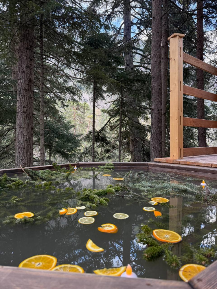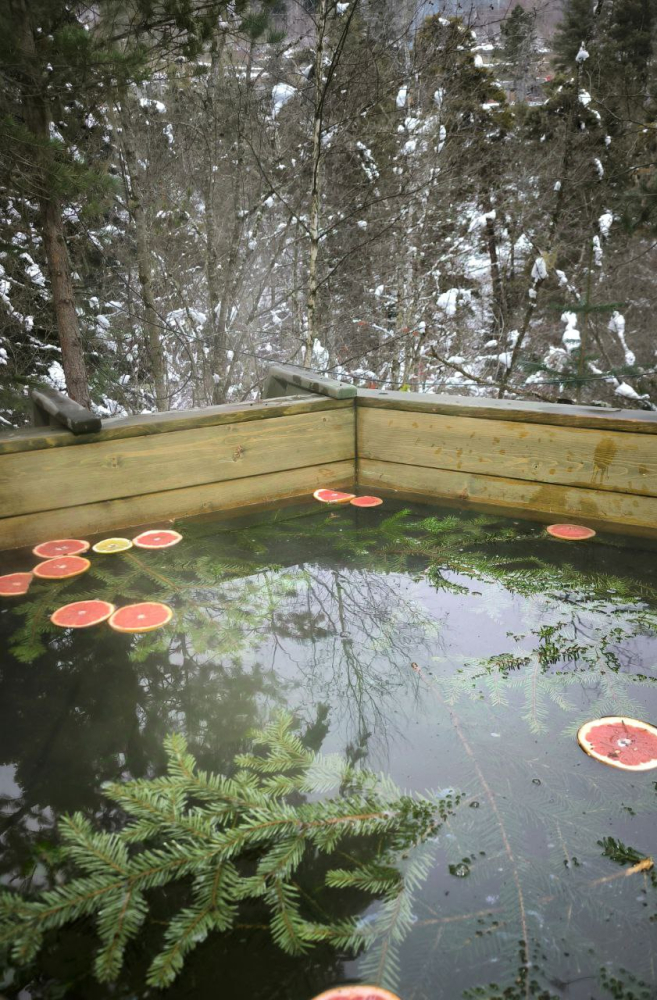 На террасе двух домов, Соло1 и Соло 3, расположены индивидуальные банные чаны, которые нагреваются до комфортной температуры 40°C, при этом нагрев до 20:00 включен в стоимость проживания, а использование после этого времени доступно за дополнительную плату. После нагрева чан сохраняет оптимальную температуру для купания в течение 2–3 часов. Возможно дополнительное ароматизирование воды пихтовыми веточками и цитрусовыми фруктами, однако из-за сложности очистки чана от мякоти за эту услугу взимается дополнительная плата. Все пожелания по времени использования и дополнительным услугам необходимо согласовать до 20:00, когда завершается рабочий день нашего сотрудника.