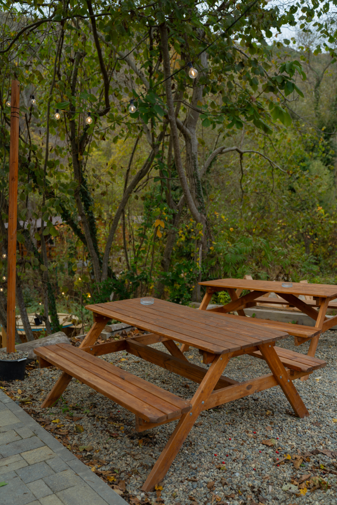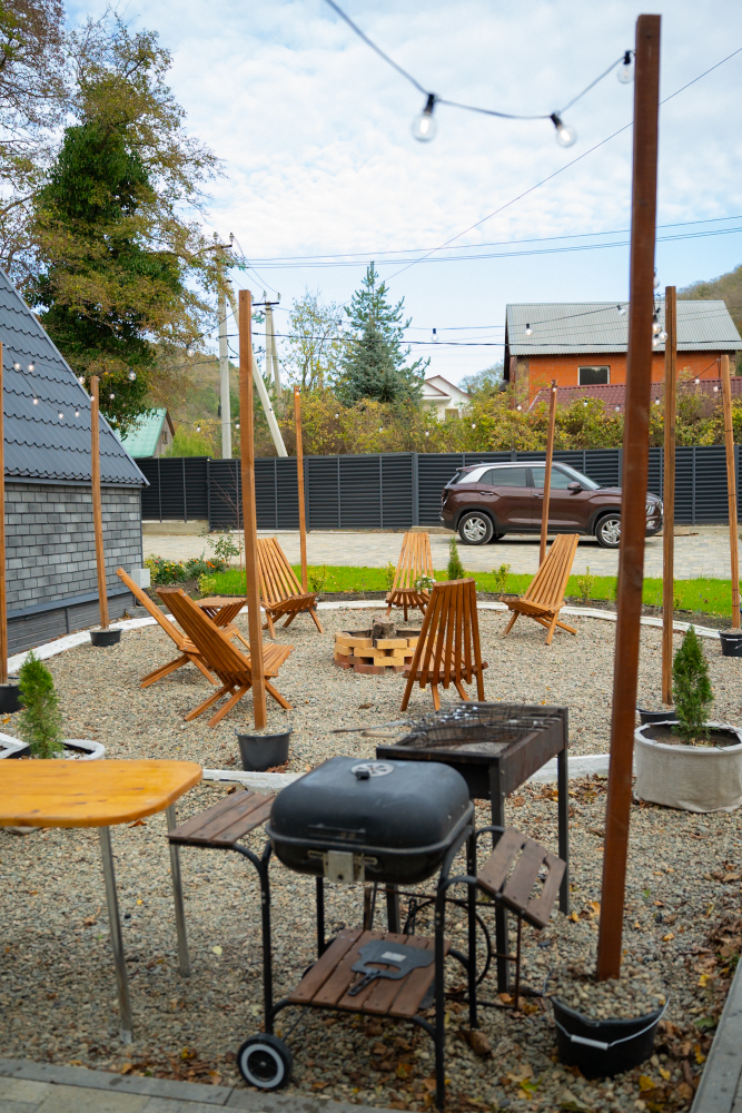 У каждого домика имеется собственная мангальная зона, оборудованная мангалом и комплектом шампуров.