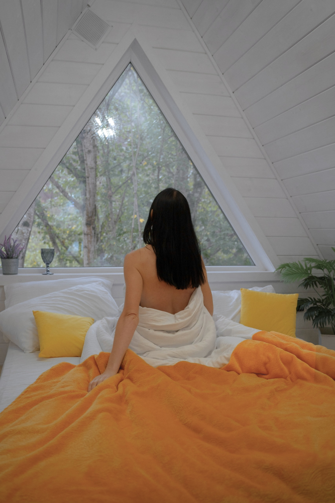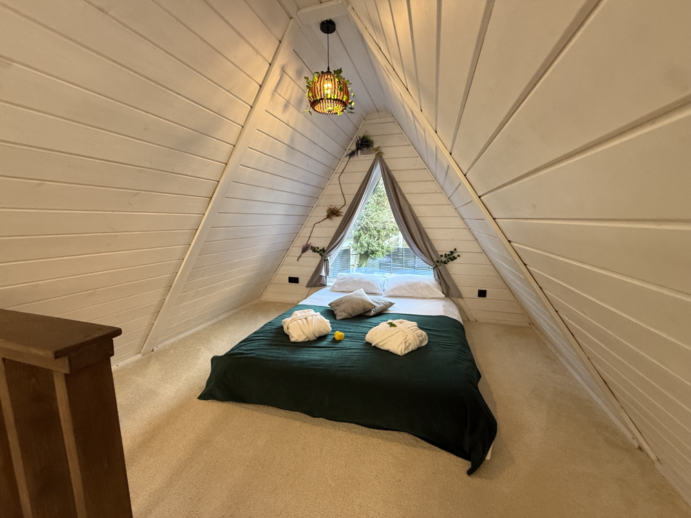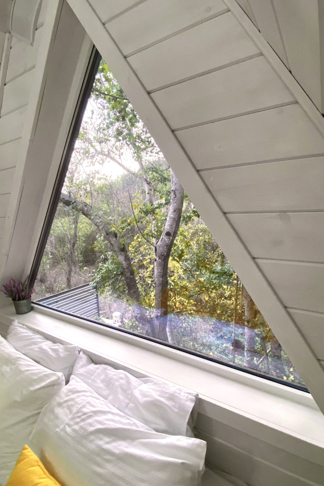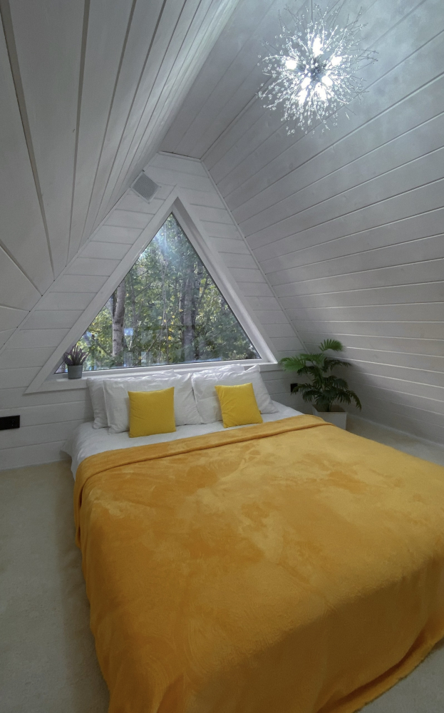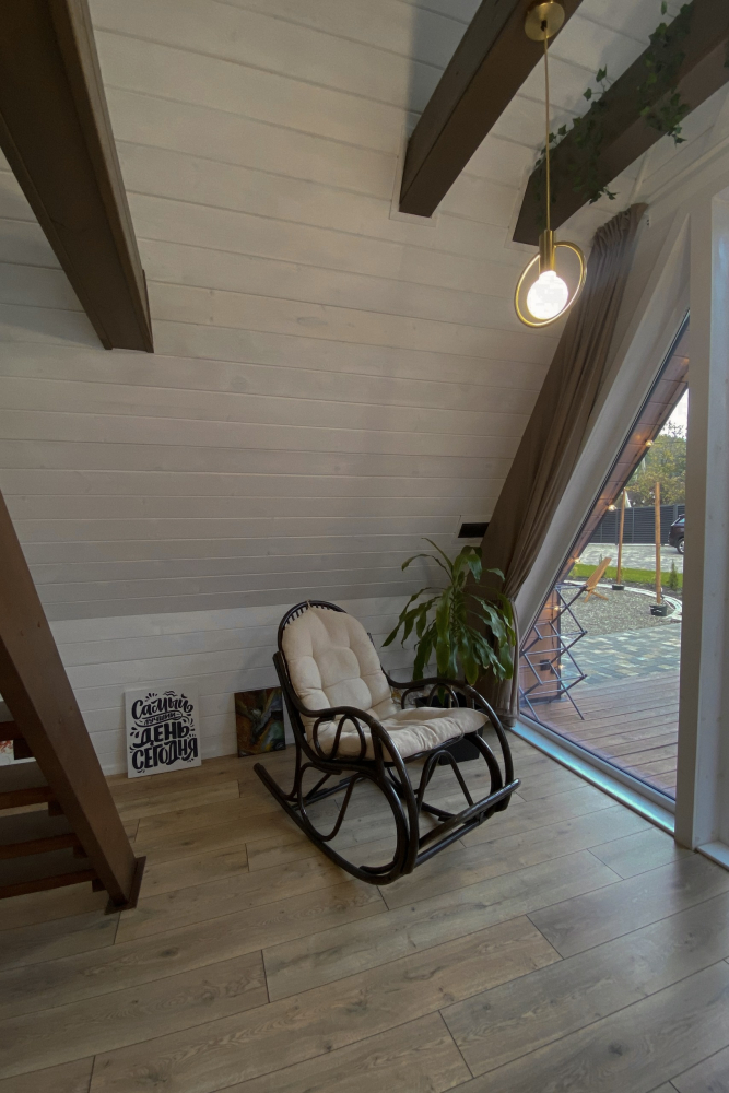 - Спальня на втором этаже с видом на лес