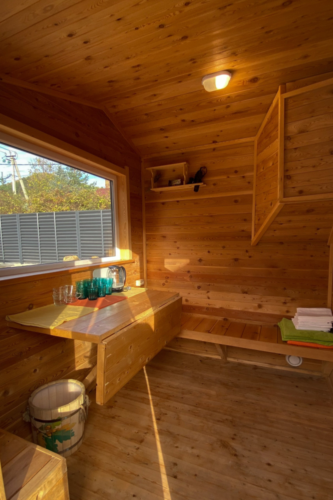Настоящая кедровая баня на дровах с банной комнатой и парилкой до 6-ти человек, стоимость 4000 рублей за 2 часа.