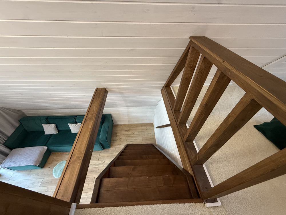 - Спальня на втором этаже с видом на стену (двуспальная кровать)