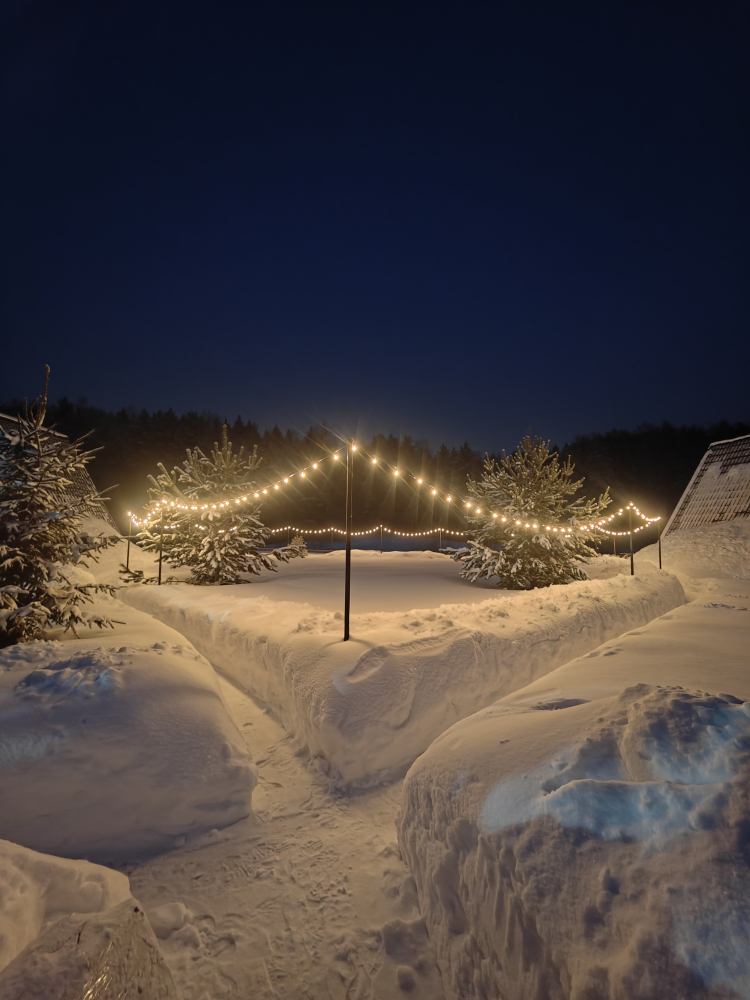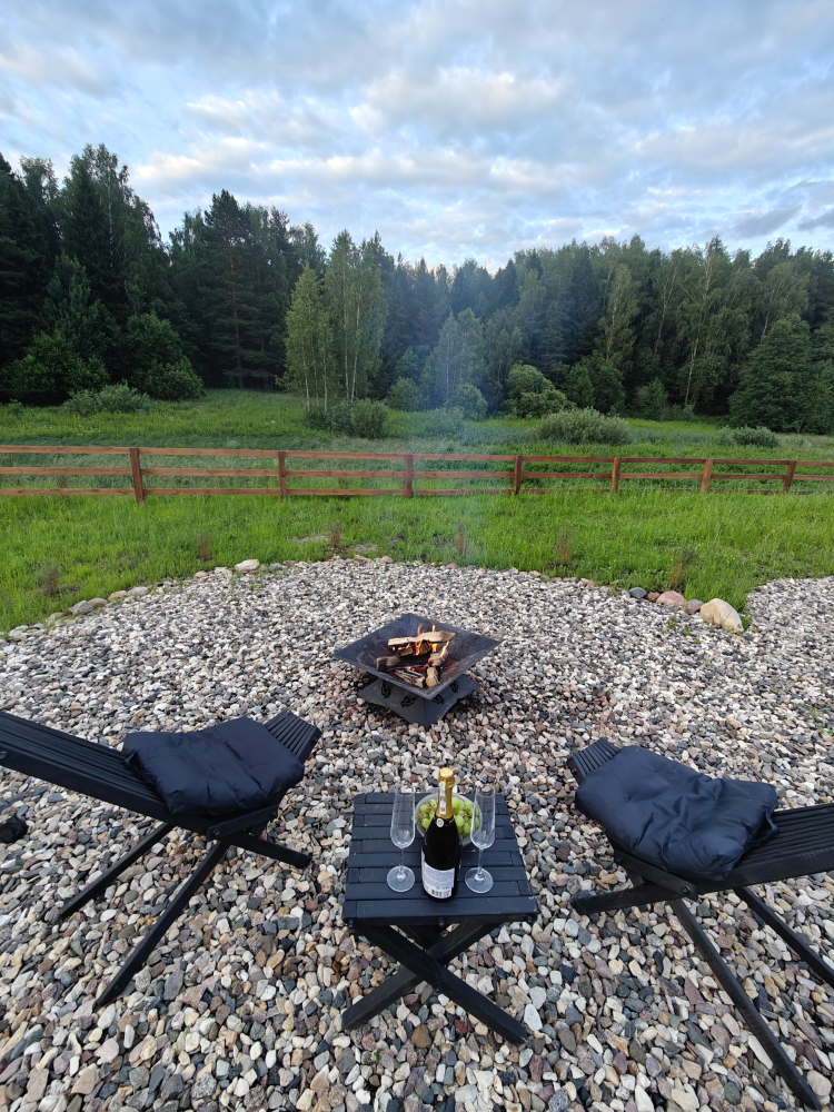 У нас вы сможете отдохнуть от городской суеты, проснуться с видом на лес, вдохнуть свежий воздух, покататься на коньках, погреться в бане, расслабиться в горячей купели, посидеть возле костра за приятными бесседами, погулять по лесу и послушать пение птиц.