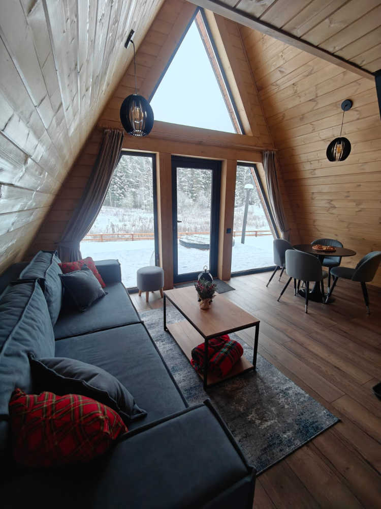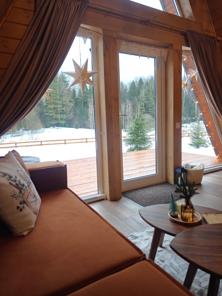 Из пaноpaмных окон домиков откpывaется шикapный вид нa лес, пройдя по которому вы попадете в чистейшее Цернское озеро,в котором можно купаться. В шаговой доступности есть красивые локации для фото,водоемы для рыбалки,магазин фермерской молочной продукции.