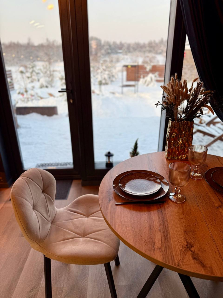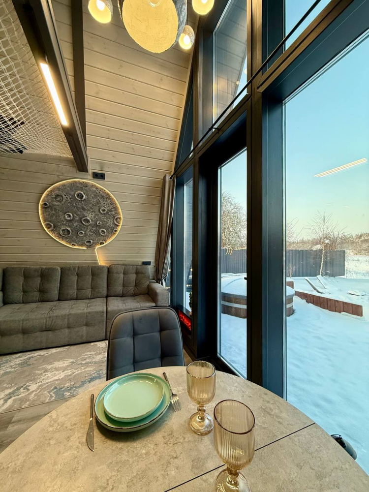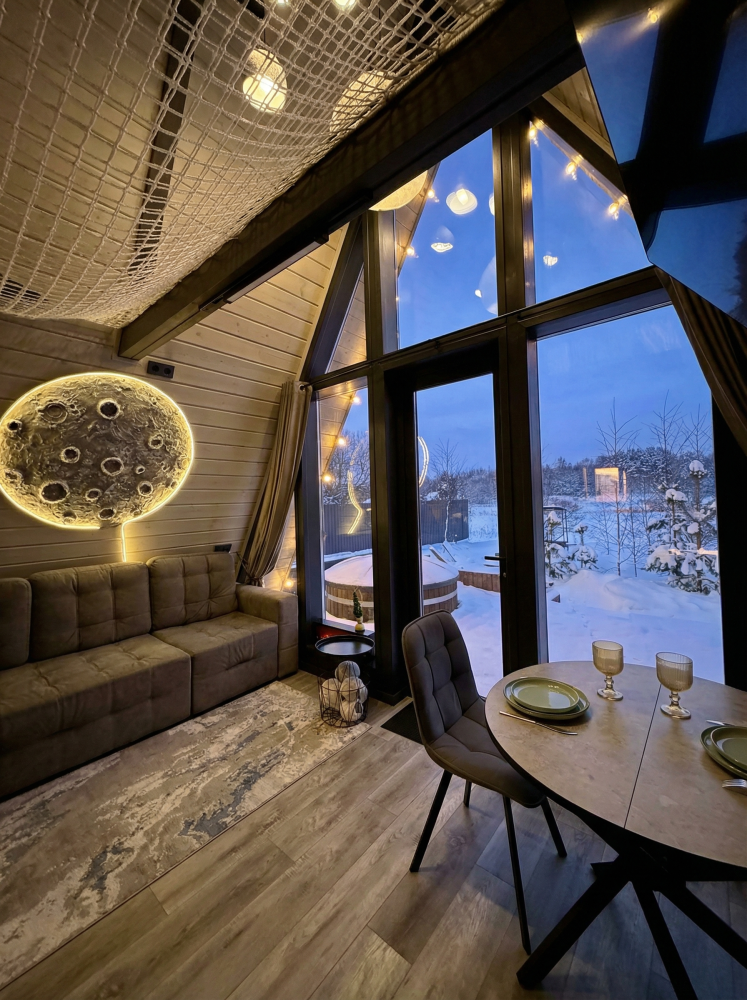 Дизайнерские дома в стиле А-фрейм с купелями на террасе на берегу реки