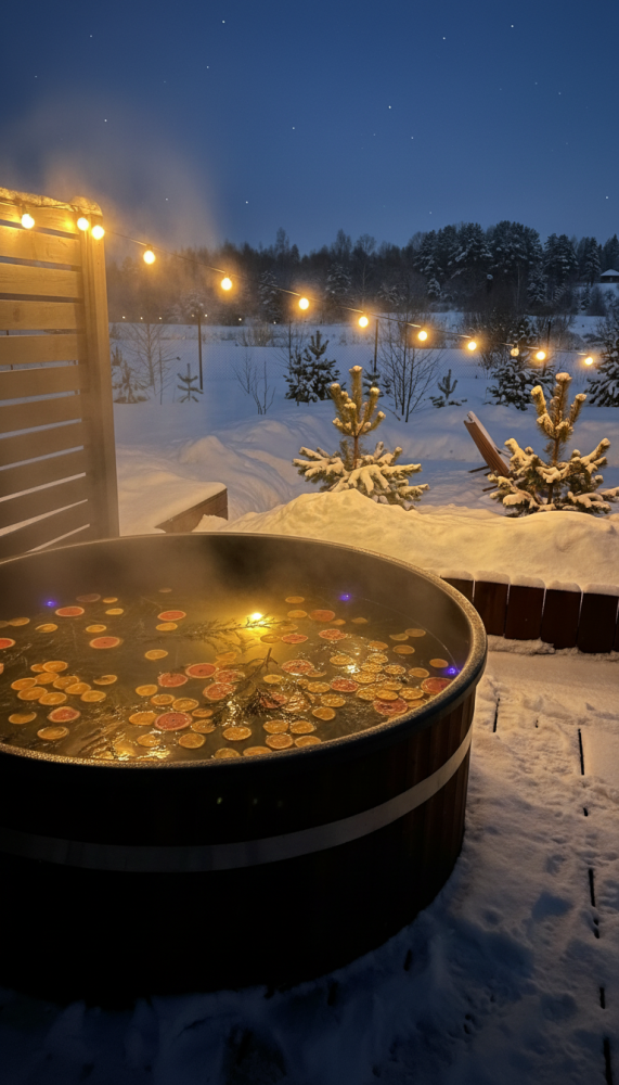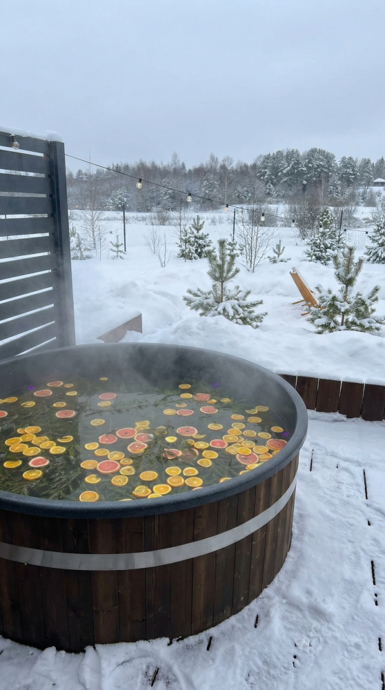 Горячие приватные купели Фурако с подсветкой, стоимость 5000 рублей (без наполнения), обеспечивают контраст температур, который улучшает кровообращение и укрепляет иммунитет; горячая вода снимает мышечное напряжение, помогает справиться со стрессом, улучшает сон и настроение. Купель растапливается до 39-43 градусов, время использования — 3-4 часа (до остывания); дополнительно можно заказать наполнение из прайс-листа.