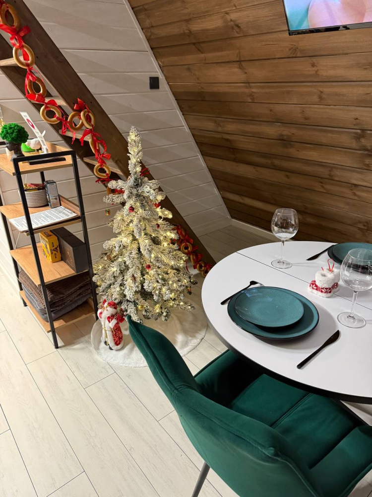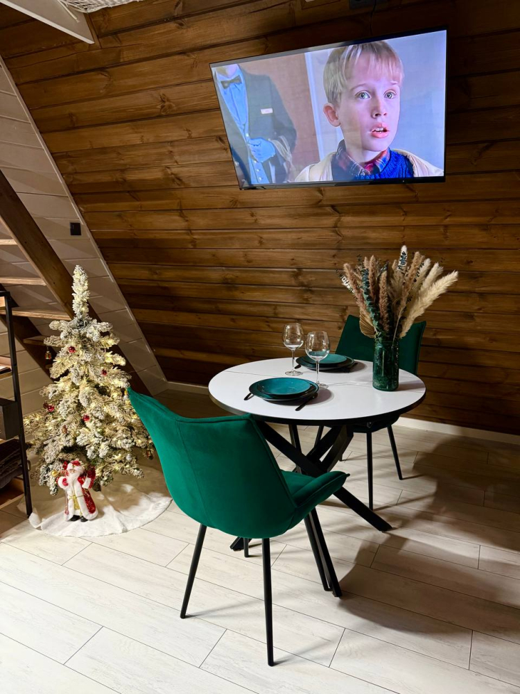 - Полноценная кухня с холодильником, чайником, кофемашиной, микроволновкой и красивой посудой.
