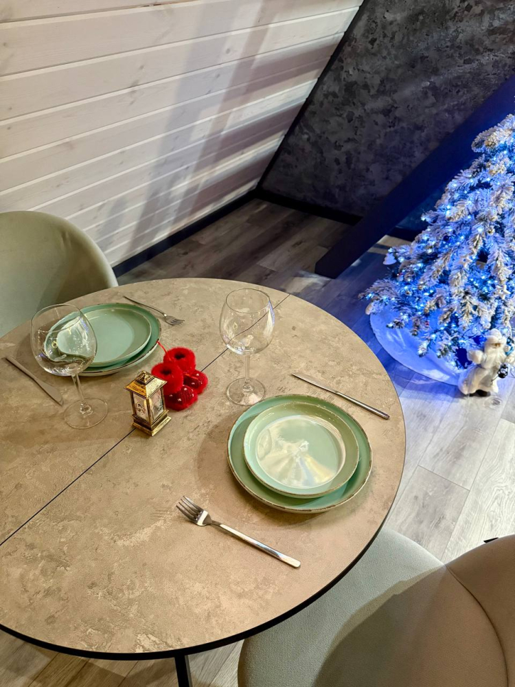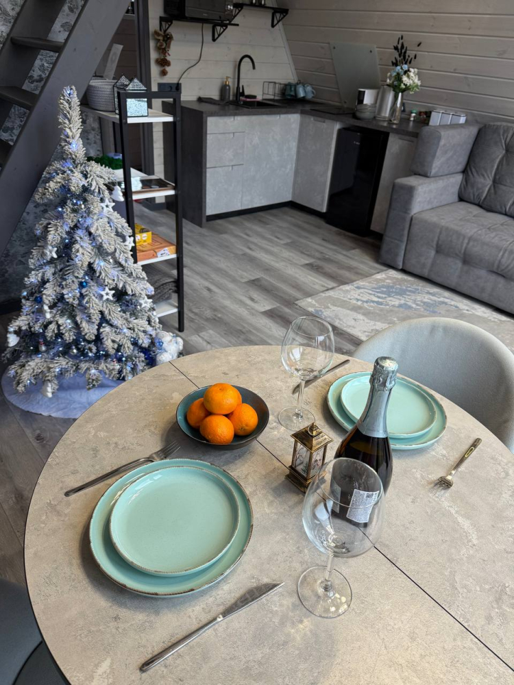 - На террасе каждого дома приватная премиум купель с подсветкой. Ароматные травяные запарки, хвойные букеты, уютные халаты, тапочки - настоящее СПА под открытым небом! Стоимость 5000 р