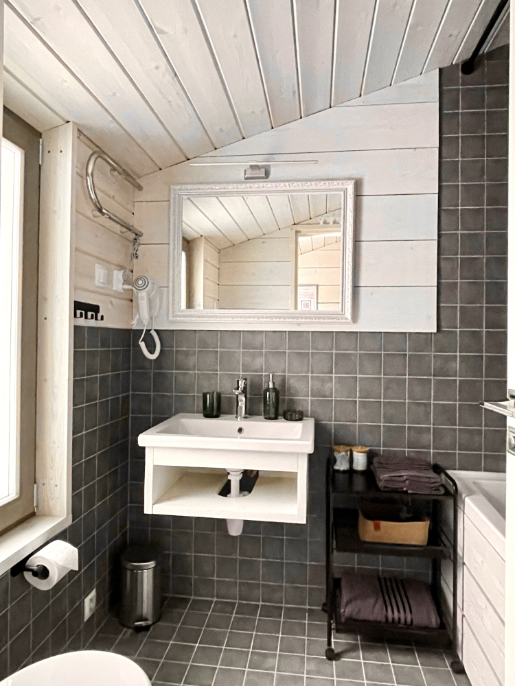 В ванной есть фен, стиральная машина, по два полотенца для каждого гостя, жидкое мыло и гель для душа.