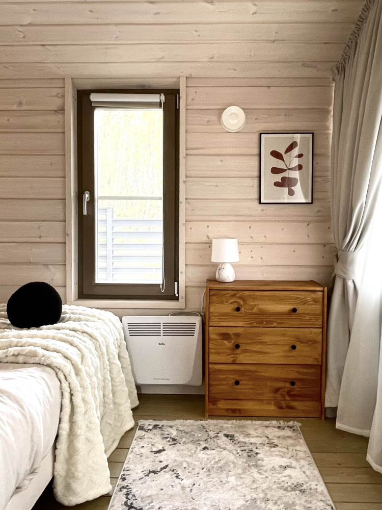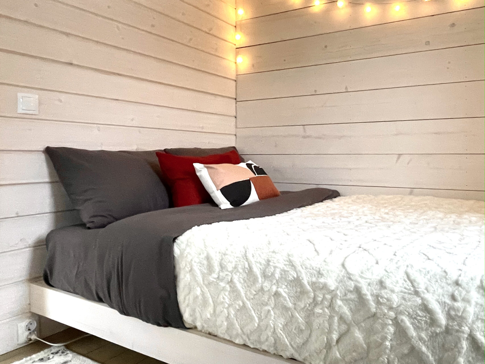 В доме есть отдельная спальня с двуспальной кроватью.