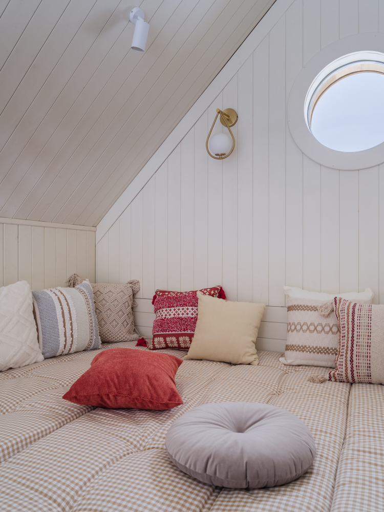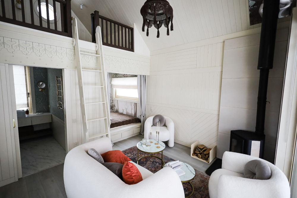 Удобная двуспальная кровать на подиуме с ортопедическим матрасом – идеальное место для чтения книг или созерцания невероятных видов за панорамным окном.