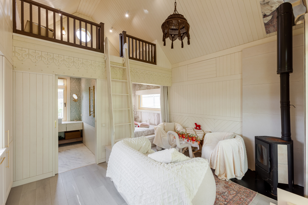 Атмосфера дома: Была ли у вас мечта очутиться в тридевятом государстве или пожить барином в палатах? А что, если сказочный дом есть в реальной жизни, где вы в полной мере можете насладиться волшебством отдыха. Домик с резными наличниками и тематической отделкой спрятался среди белых березок, разместив у себя все необходимое для комфортного пребывания – это ли не сказка?