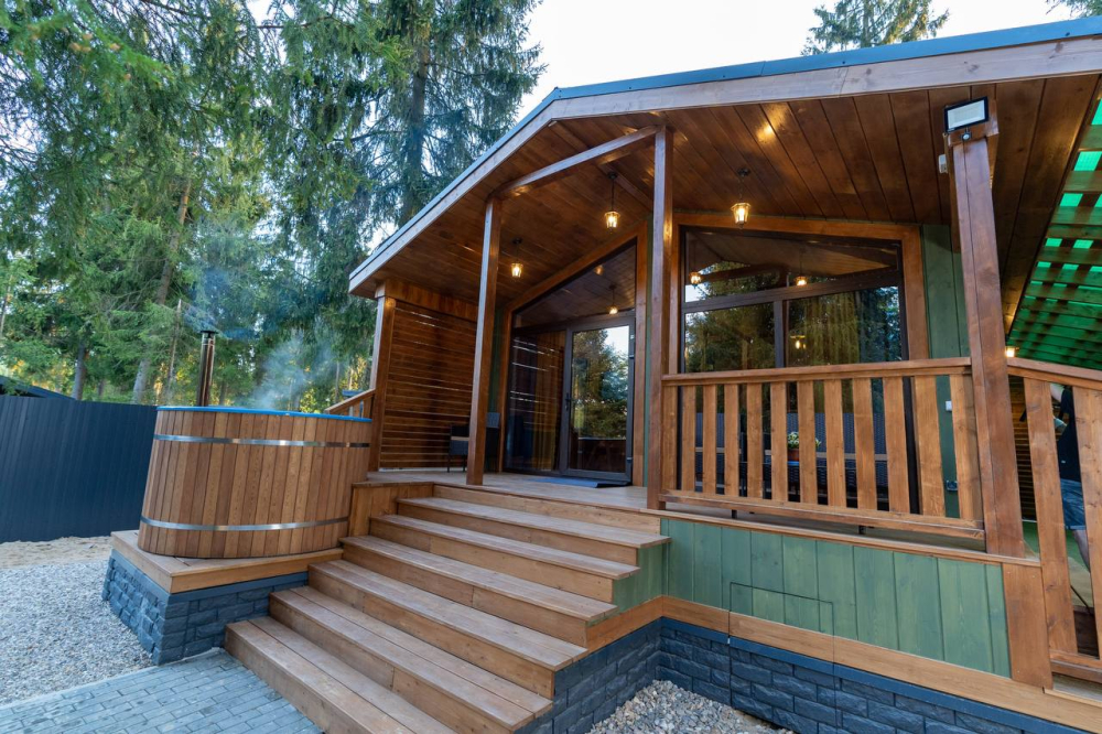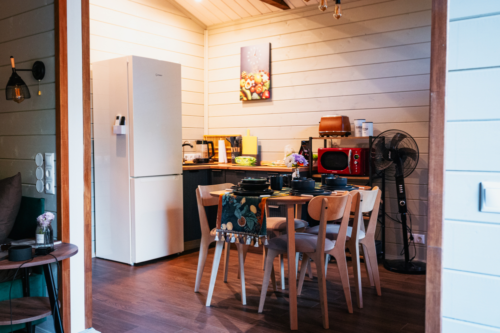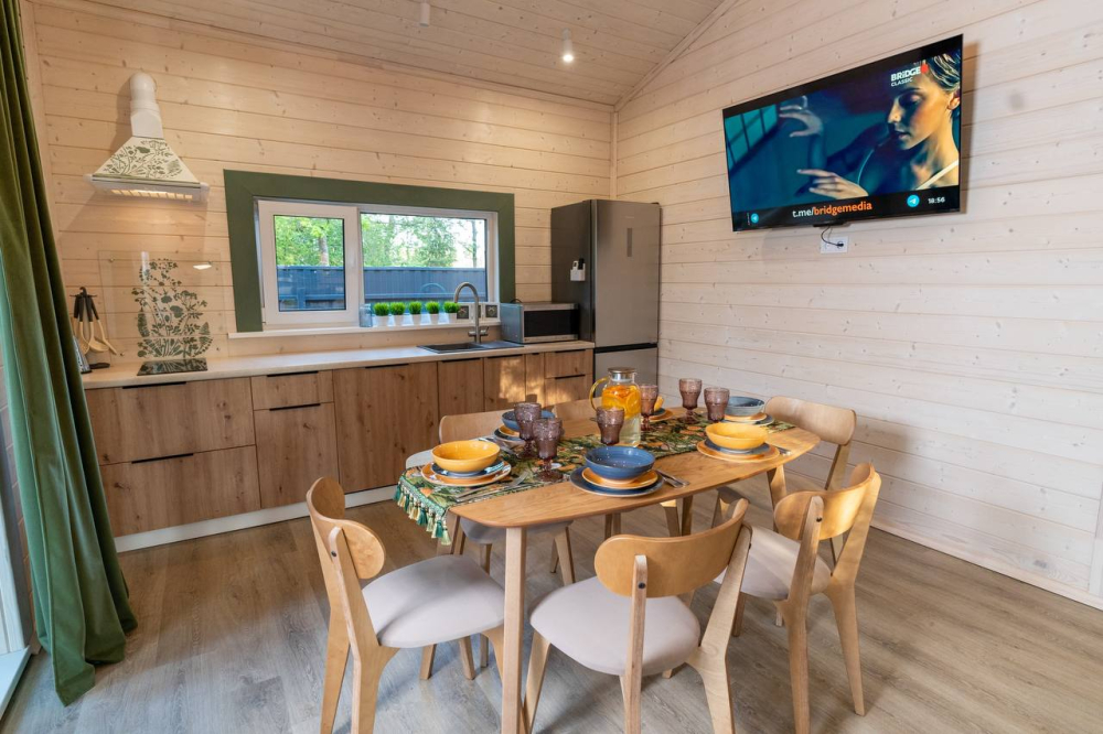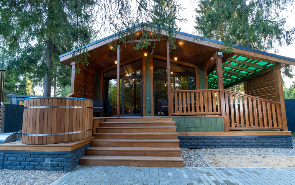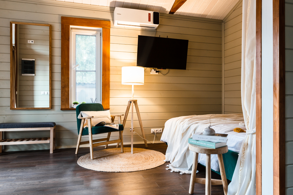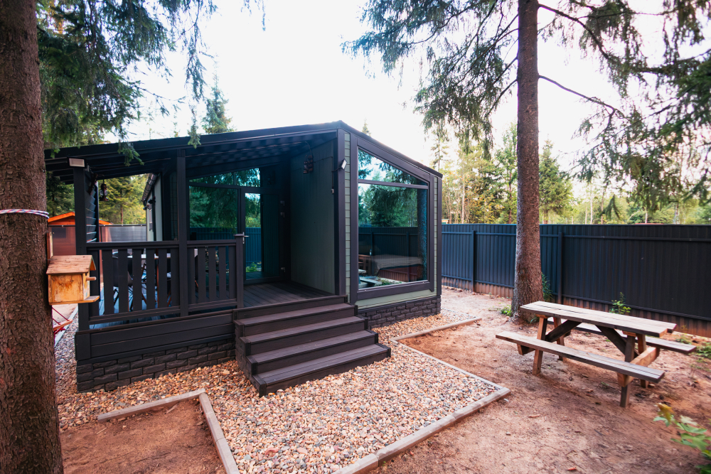 Каждый домик выполнен в индивидуальном дизайнерском стиле и идеально вписывается в природное окружение. Продумано всё до мелочей, чтобы ваш отдых был комфортным: