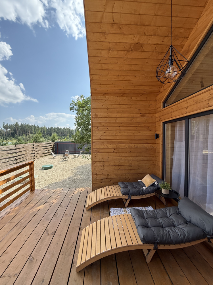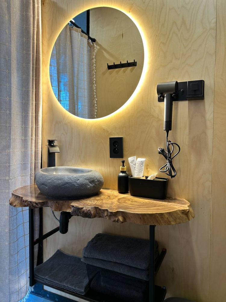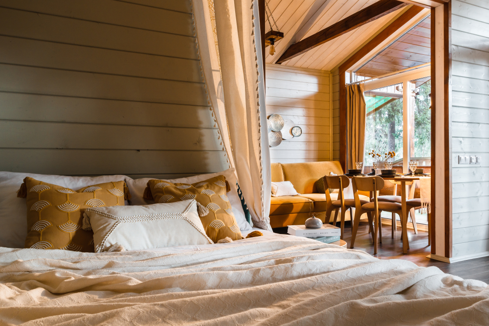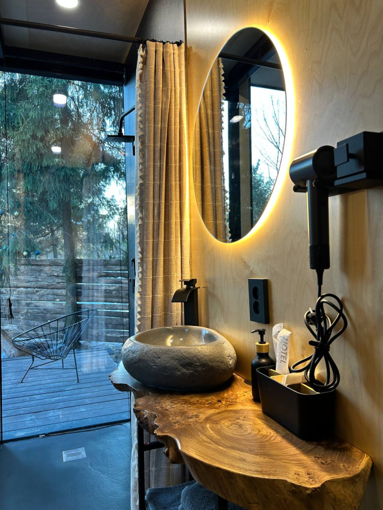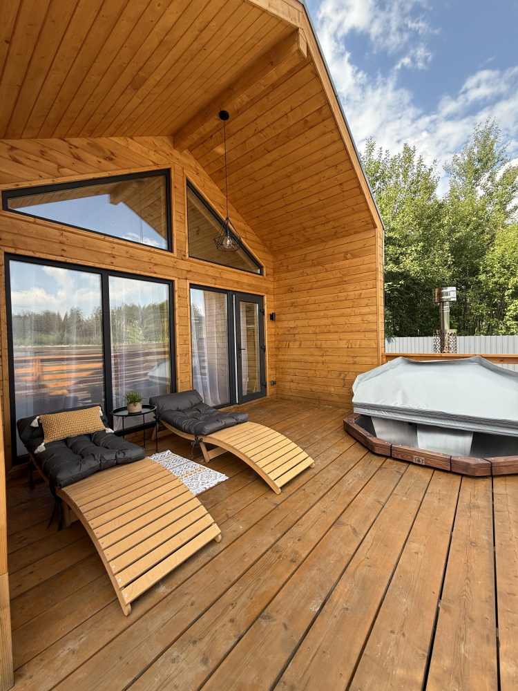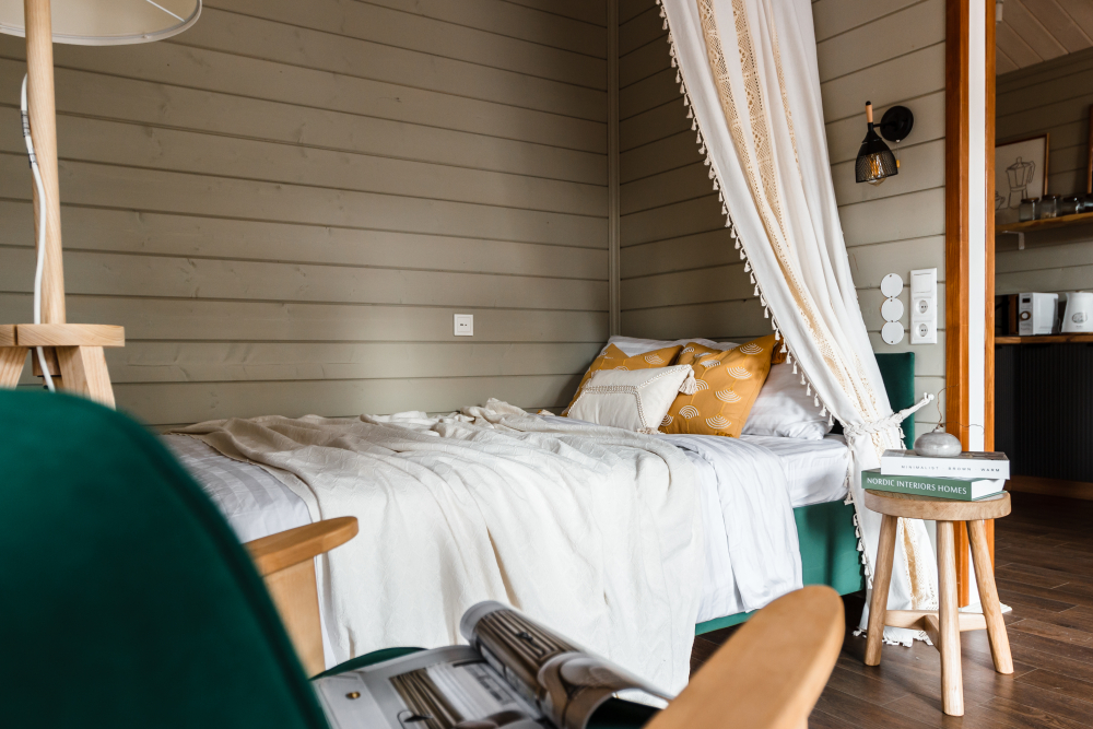 Каждый домик выполнен в индивидуальном дизайнерском стиле и идеально вписывается в природное окружение. Продумано всё до мелочей, чтобы ваш отдых был комфортным: