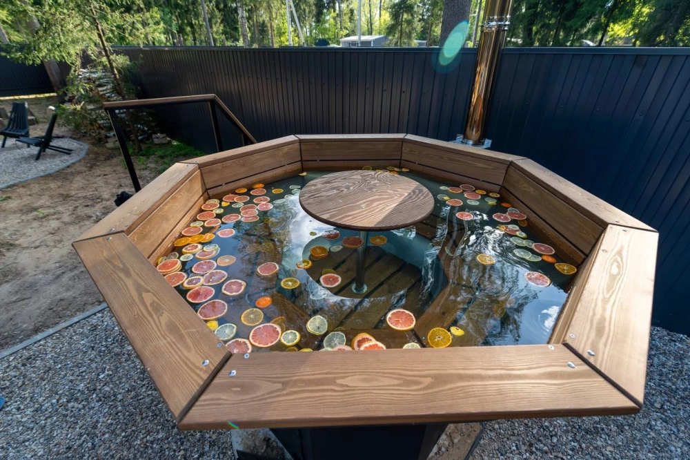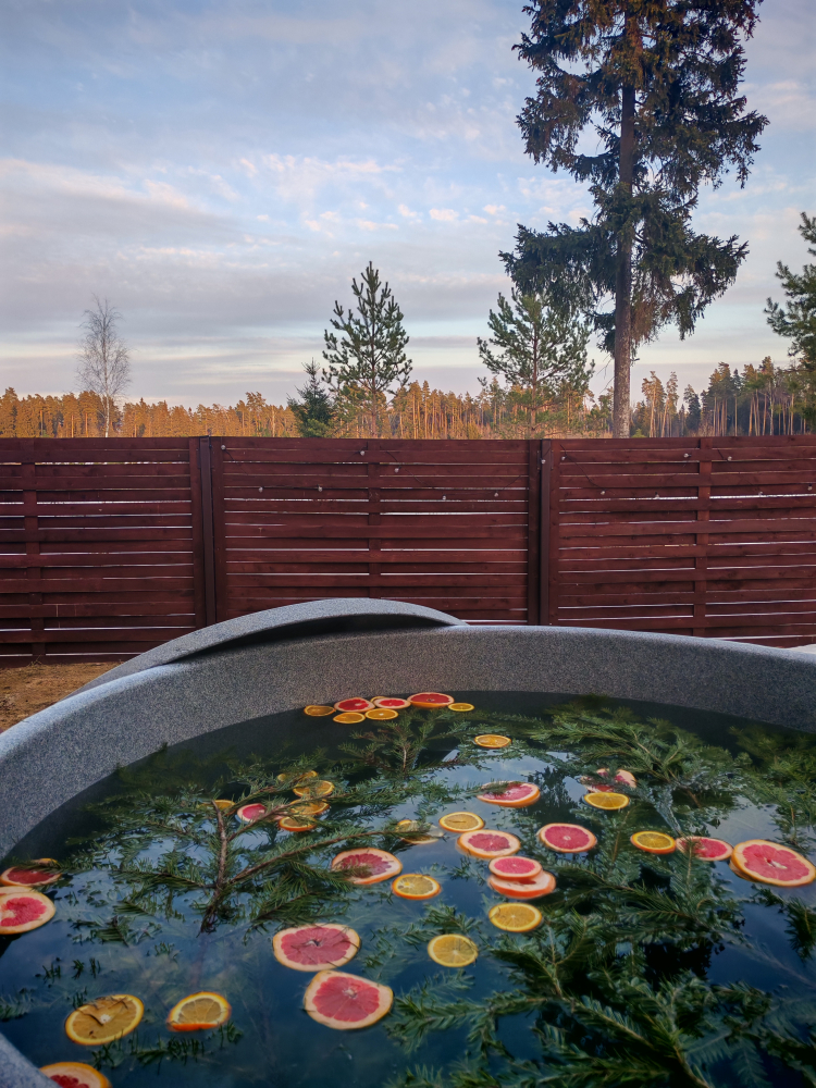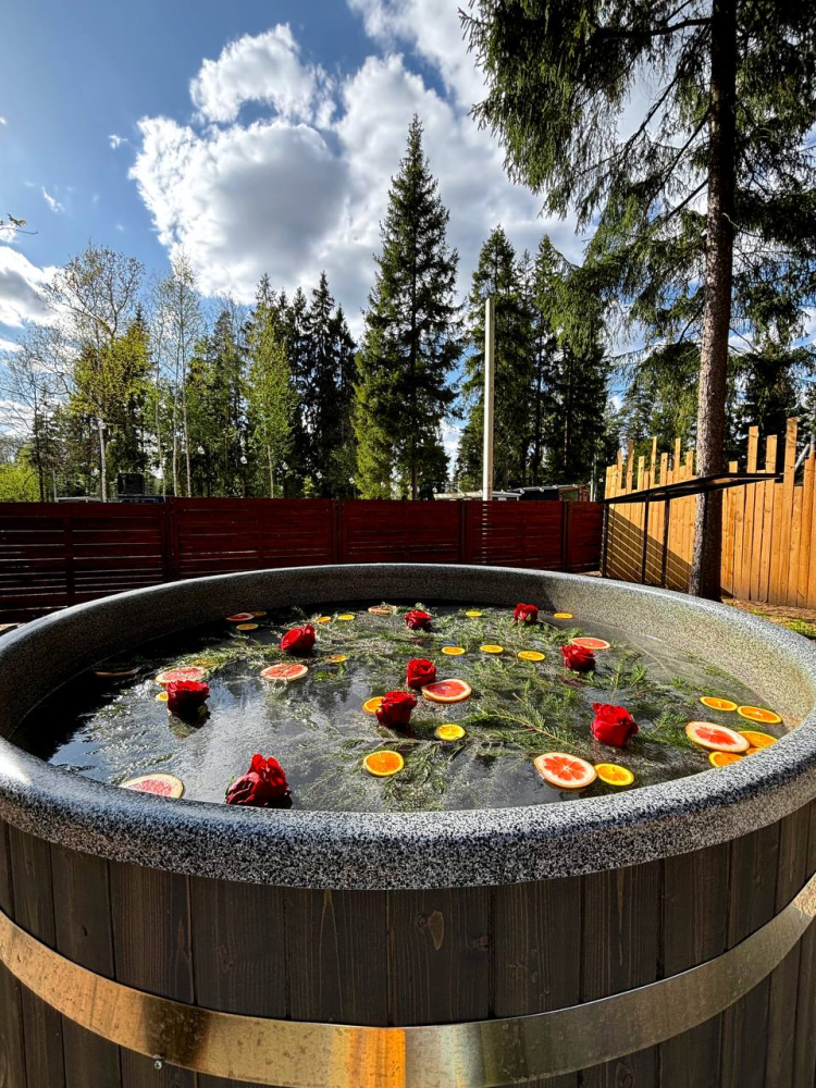 Чан можно заказать за 6000 рублей, а для усиления эффекта — добавить сбор трав, цитрусы или веточки пихты (от 1500 рублей).