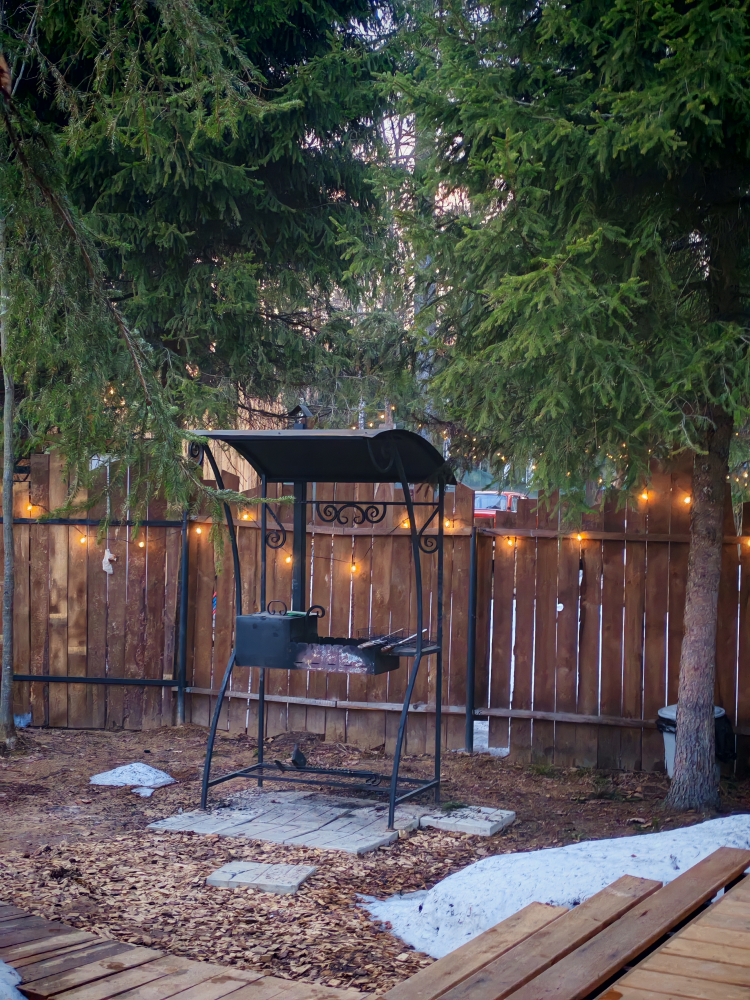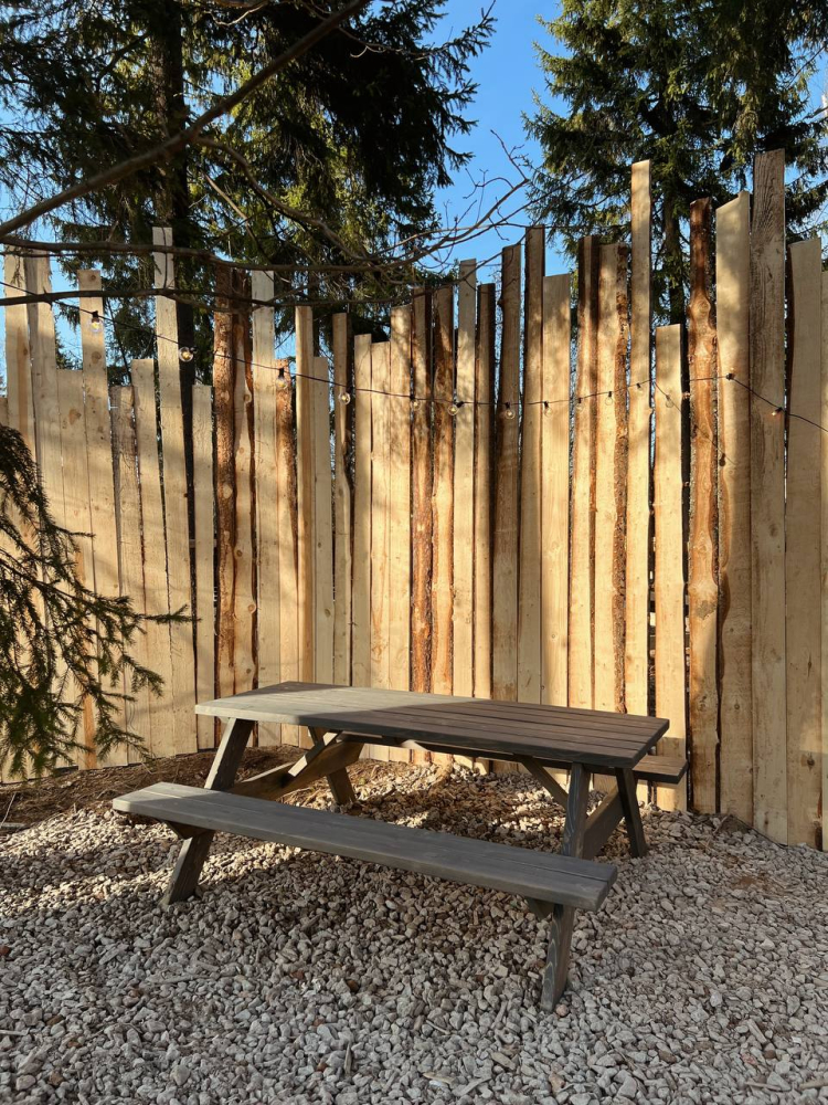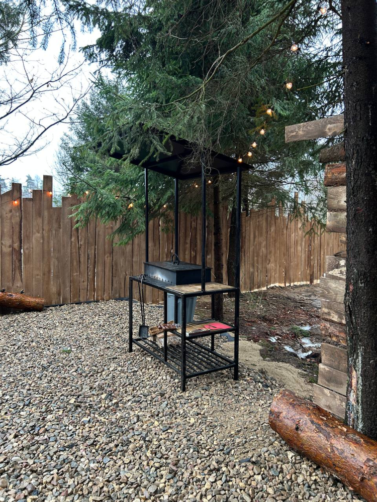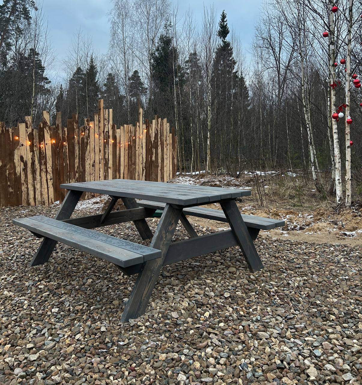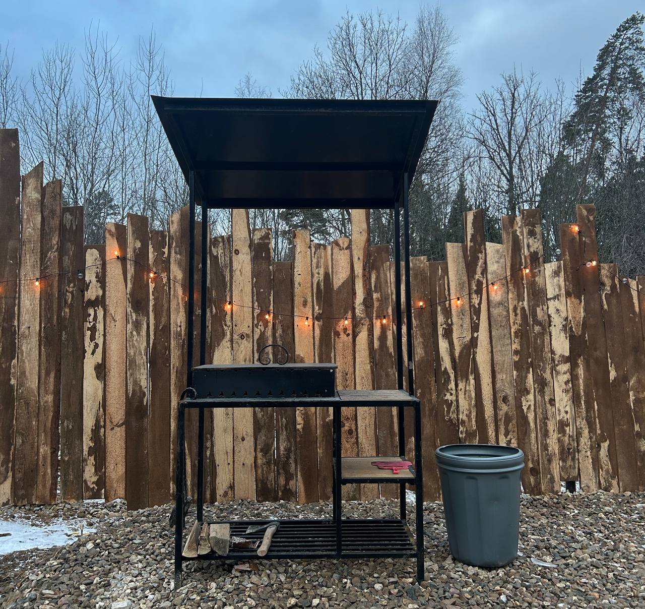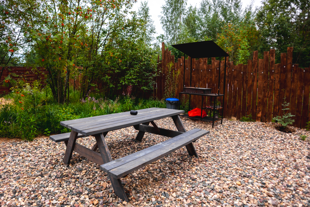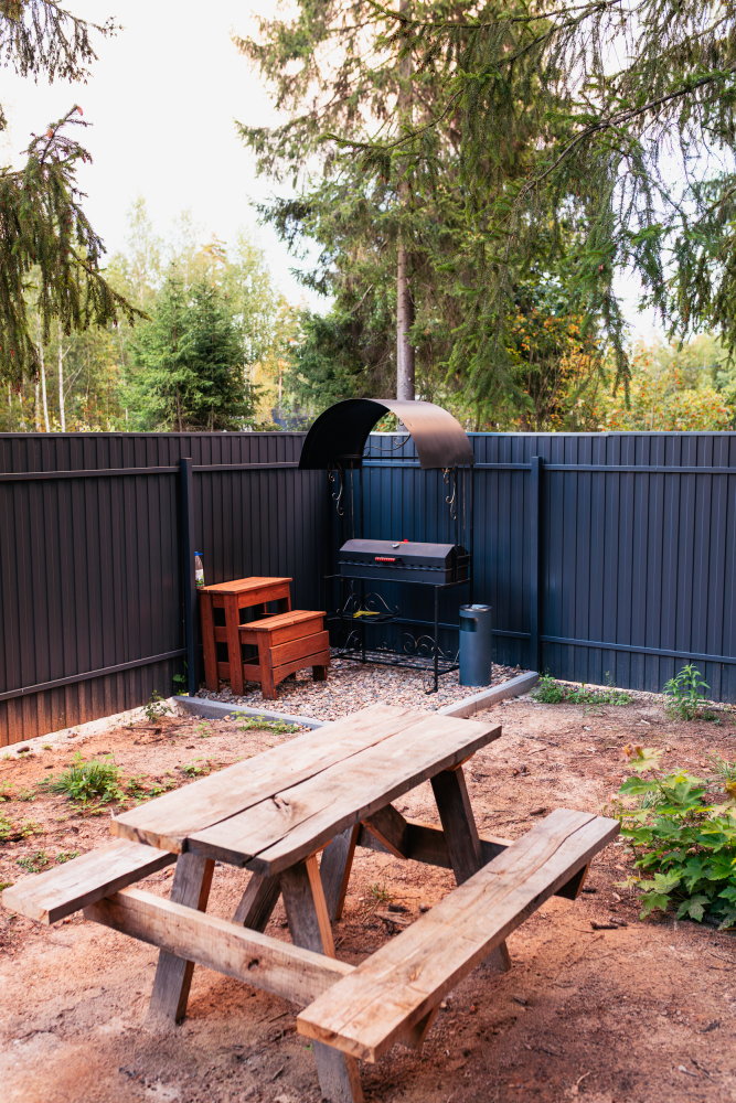 Мангальная зона, где уже есть решетка и шампура, чтобы вы могли насладиться приготовлением пищи на открытом огне. Если вам понадобятся дрова, мы предложим связку всего за 800 рублей.