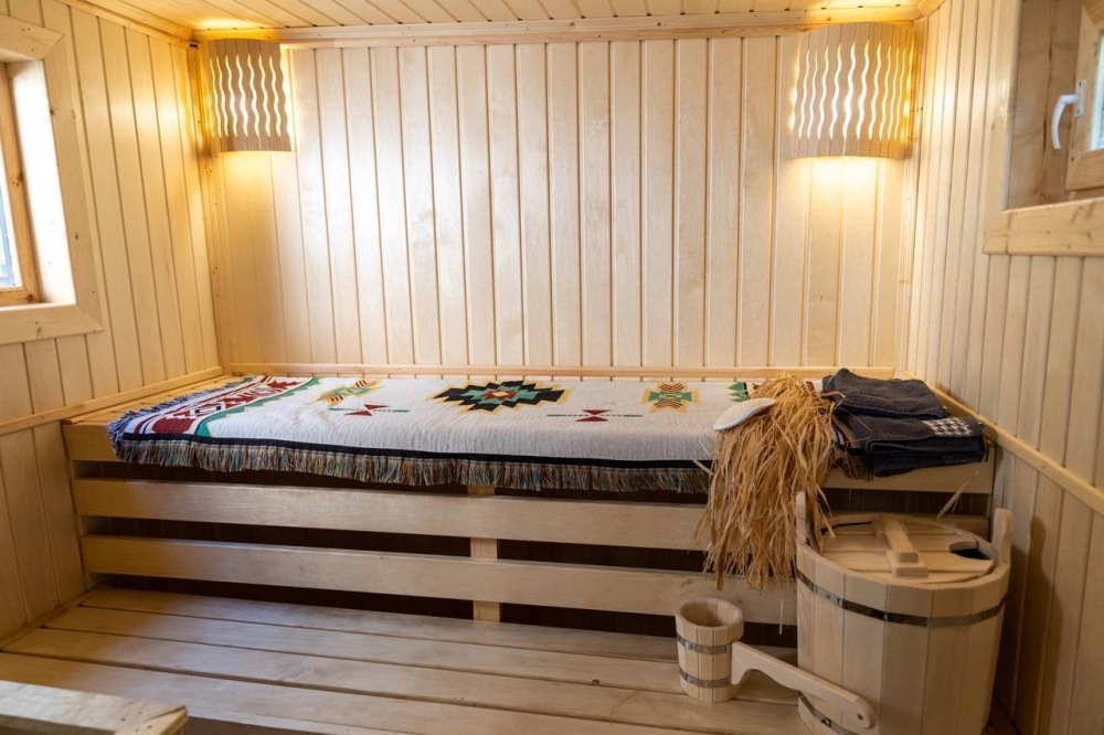 Собственная сауна на территории у дома "Смородина" и внутри дома "Крыжовник" (оплачивается отдельно 2500₽/час. минимальное время парения 3 часа )
