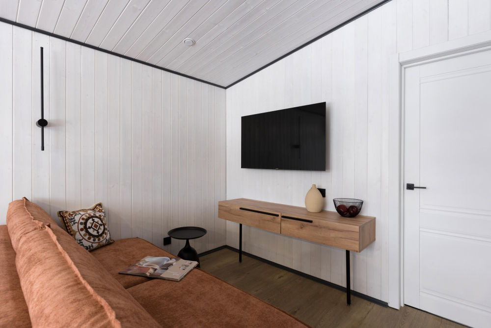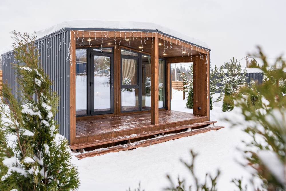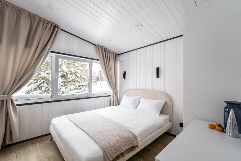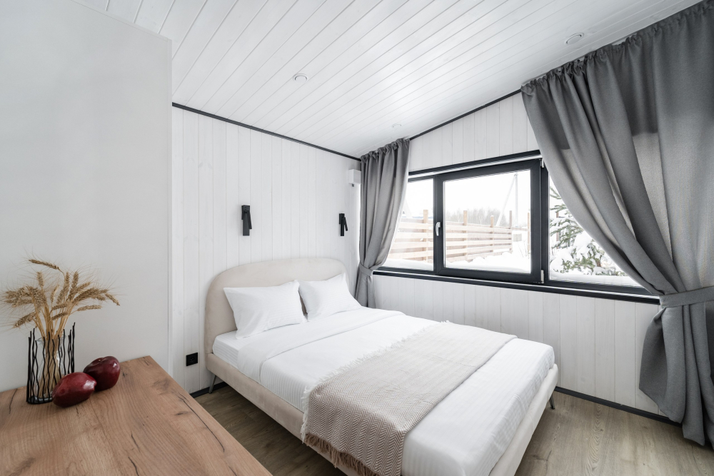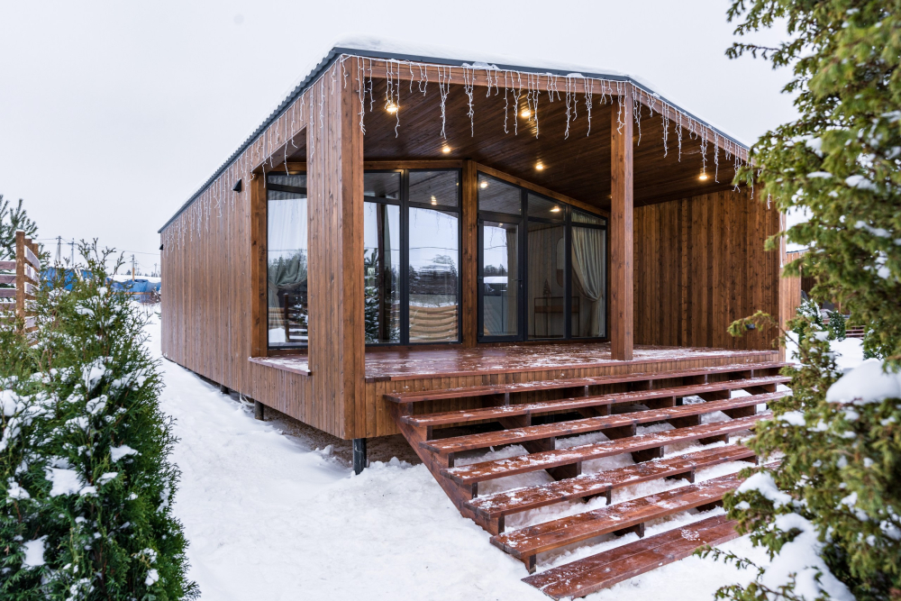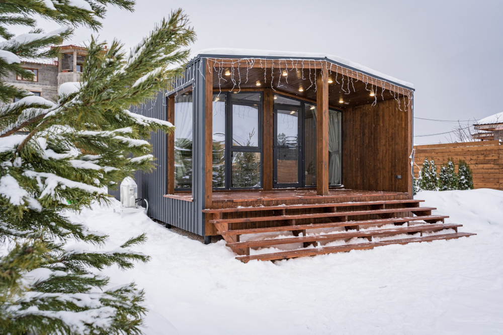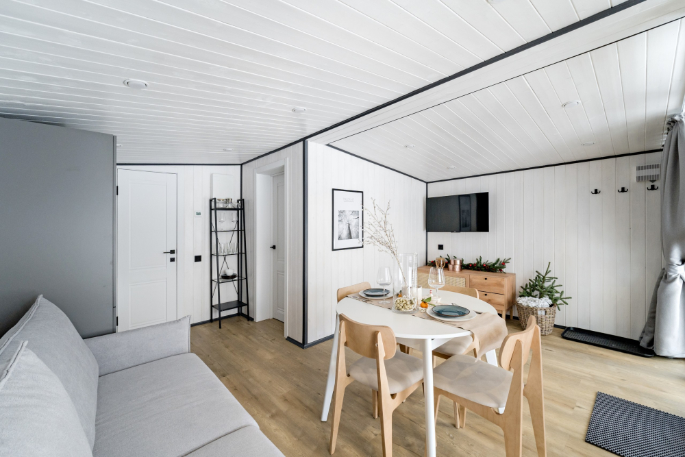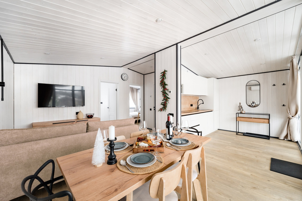 На закрытой охраняемой территории расположены 8 современных домиков, каждый из которых вмещает до 6 гостей. Пространство оформлено с вниманием к деталям — всё продумано для отдыха и расслабления.