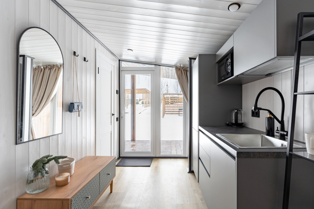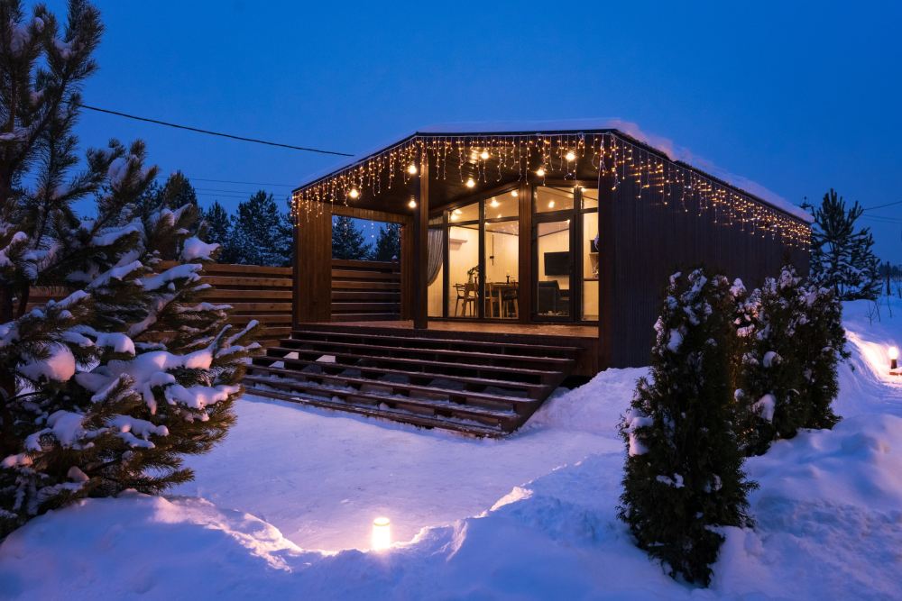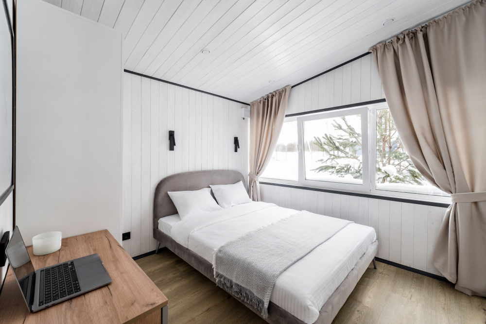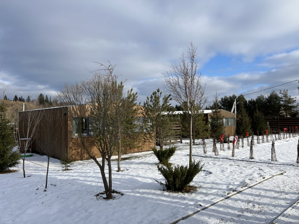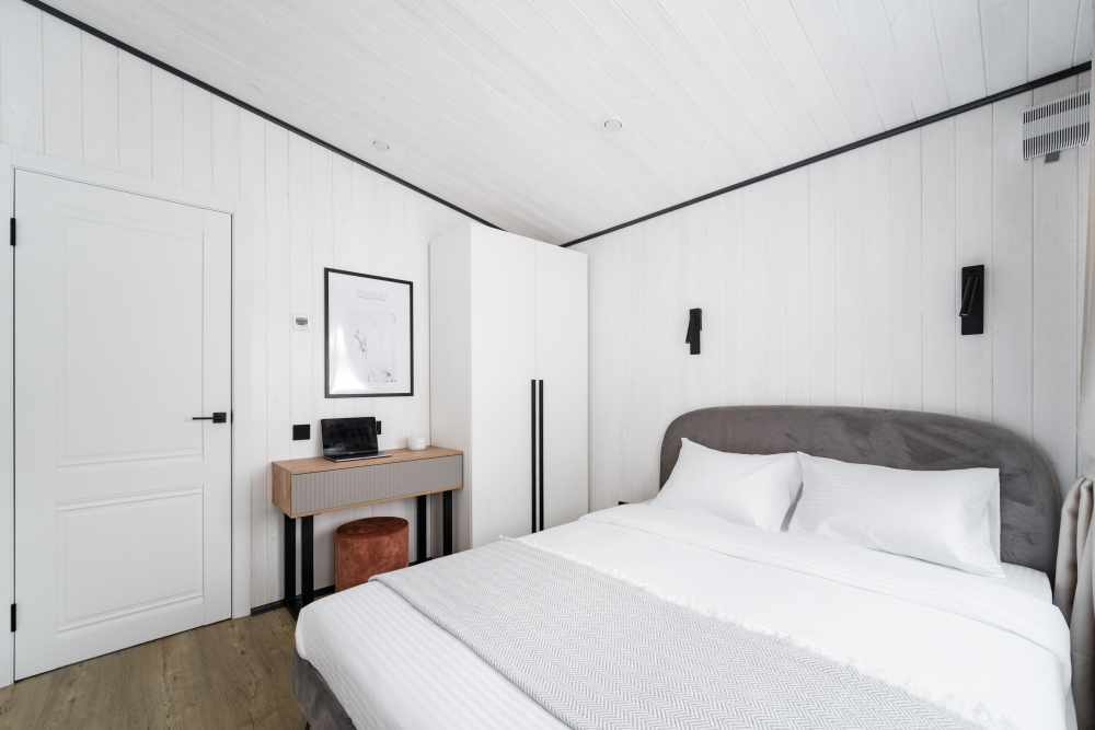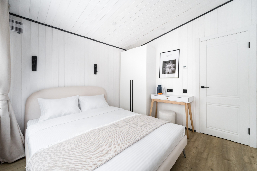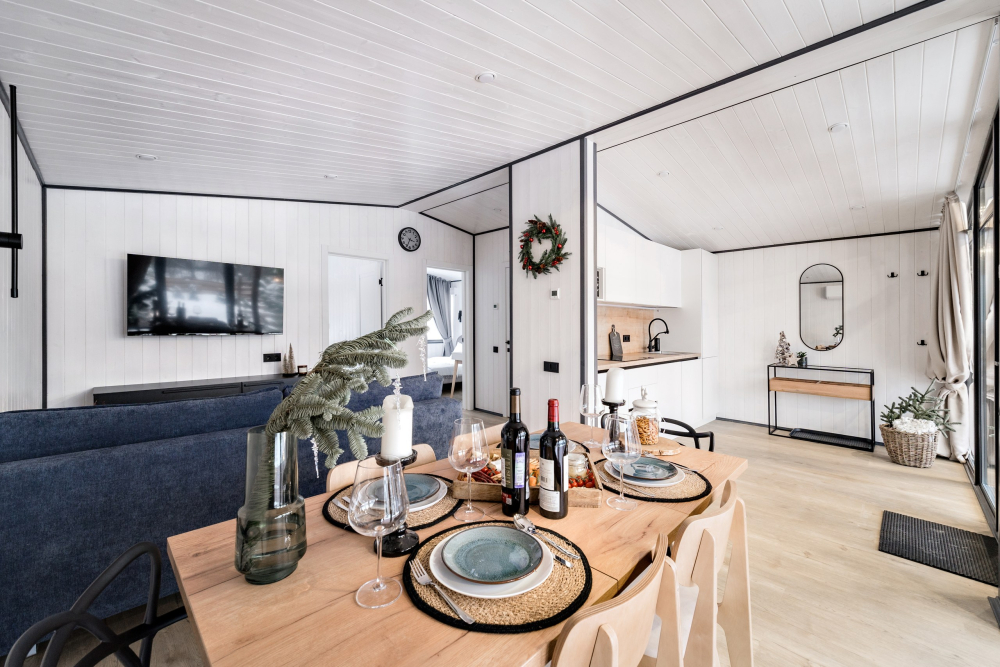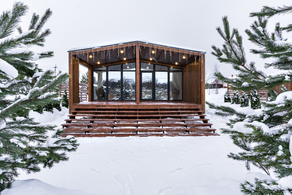 На закрытой охраняемой территории расположены 8 современных домиков, каждый из которых вмещает до 6 гостей. Пространство оформлено с вниманием к деталям — всё продумано для отдыха и расслабления.
