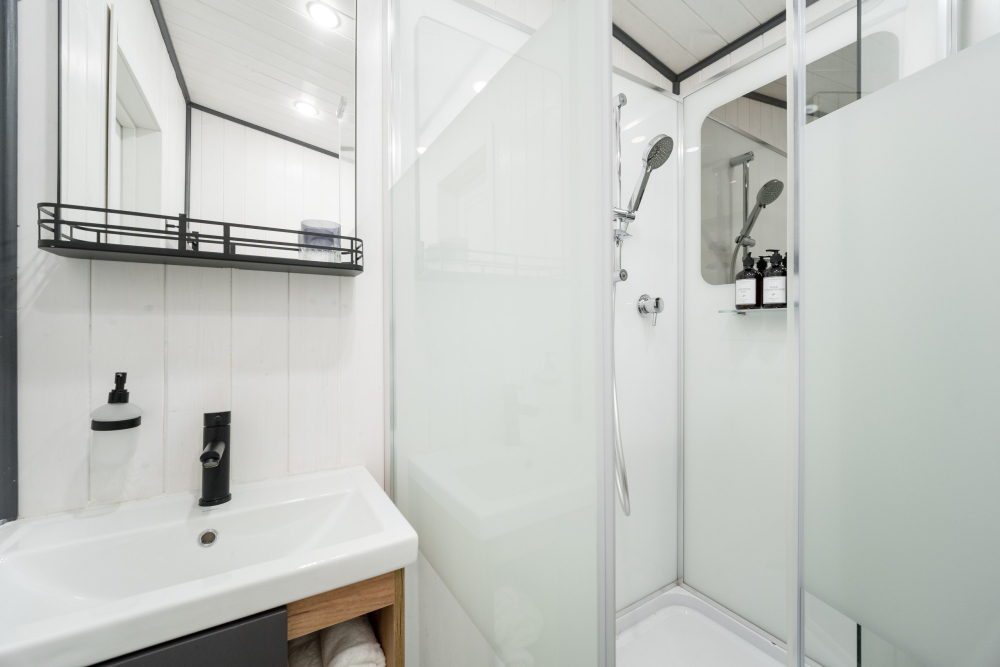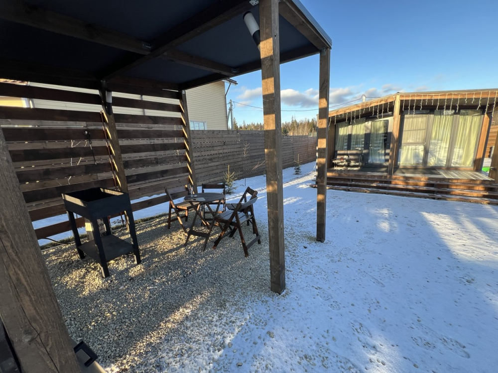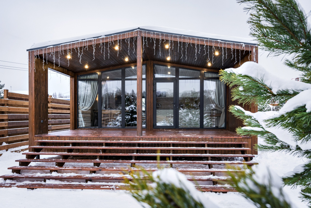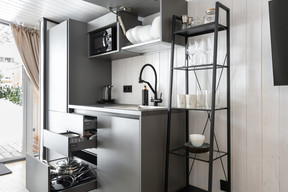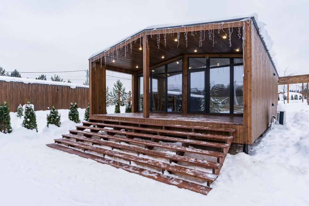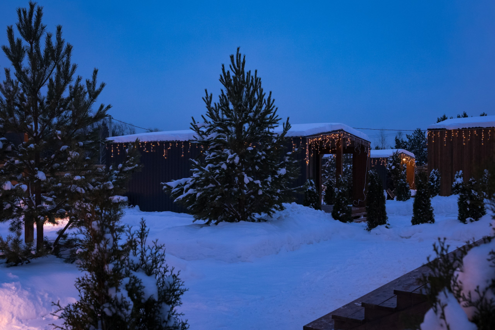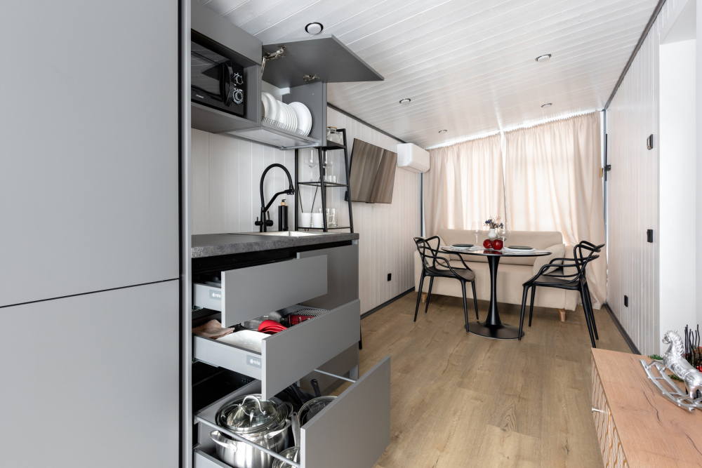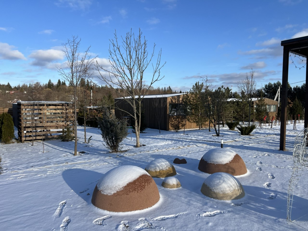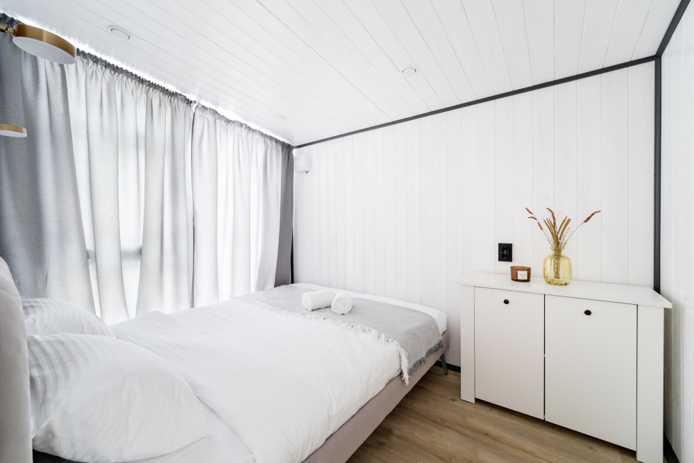 На закрытой охраняемой территории расположены 8 современных домиков, каждый из которых вмещает до 6 гостей. Пространство оформлено с вниманием к деталям — всё продумано для отдыха и расслабления.