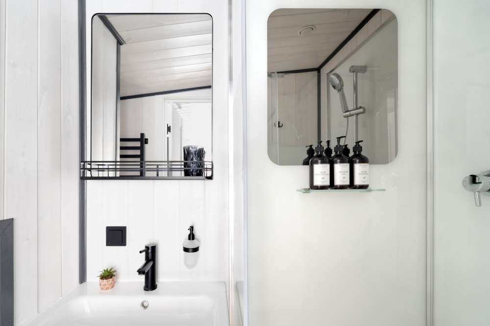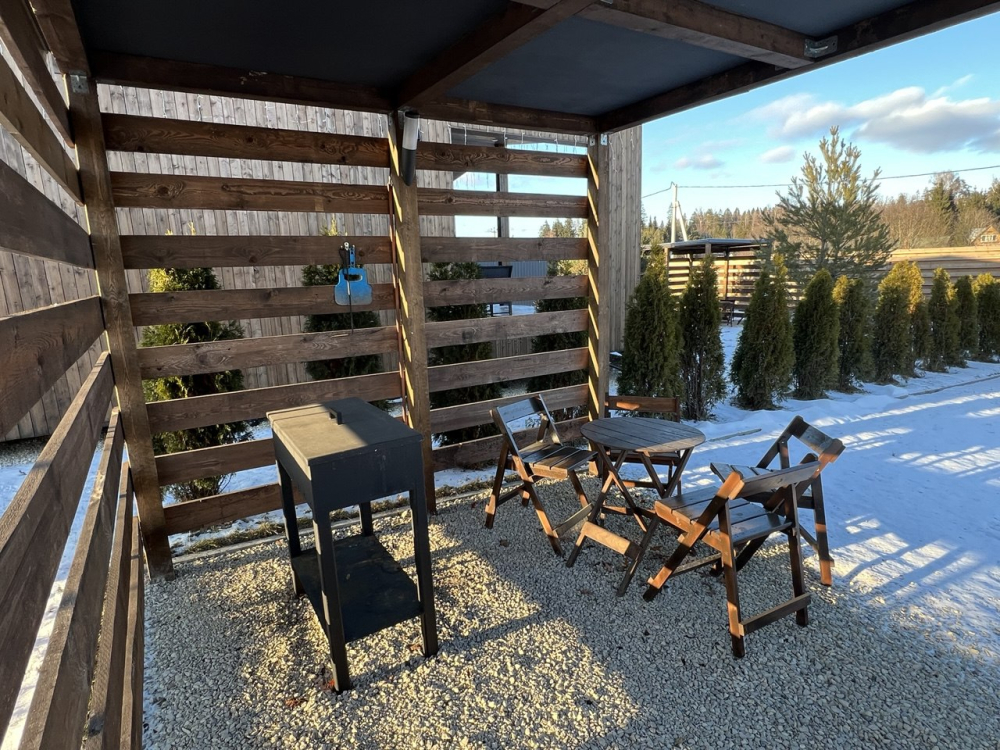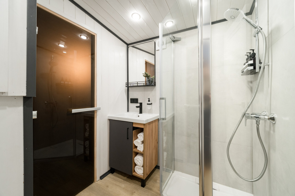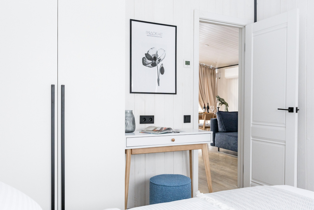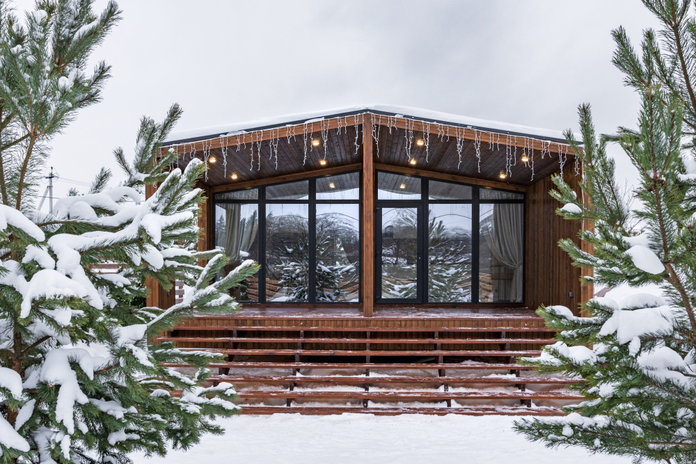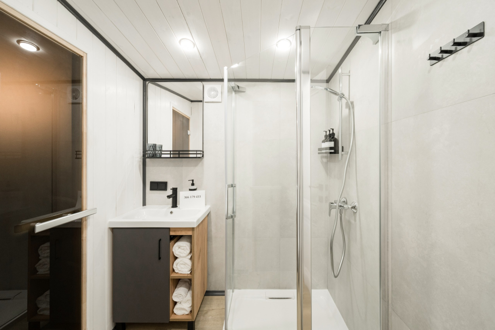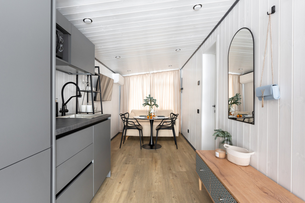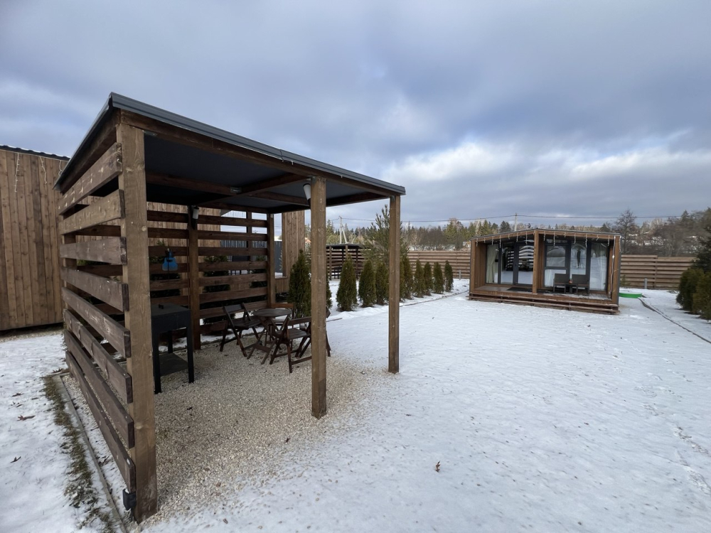 На закрытой охраняемой территории расположены 8 современных домиков, каждый из которых вмещает до 6 гостей. Пространство оформлено с вниманием к деталям — всё продумано для отдыха и расслабления.