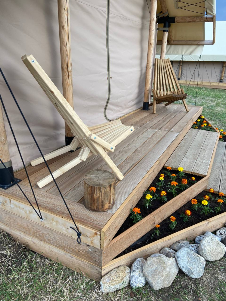- Уютные шатры с деревянной террасой, разогретой солнцем