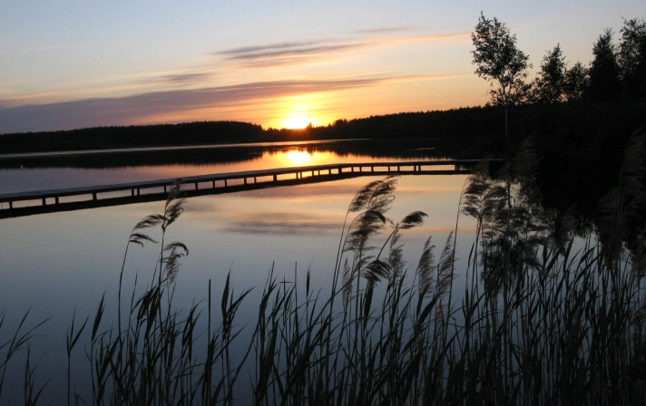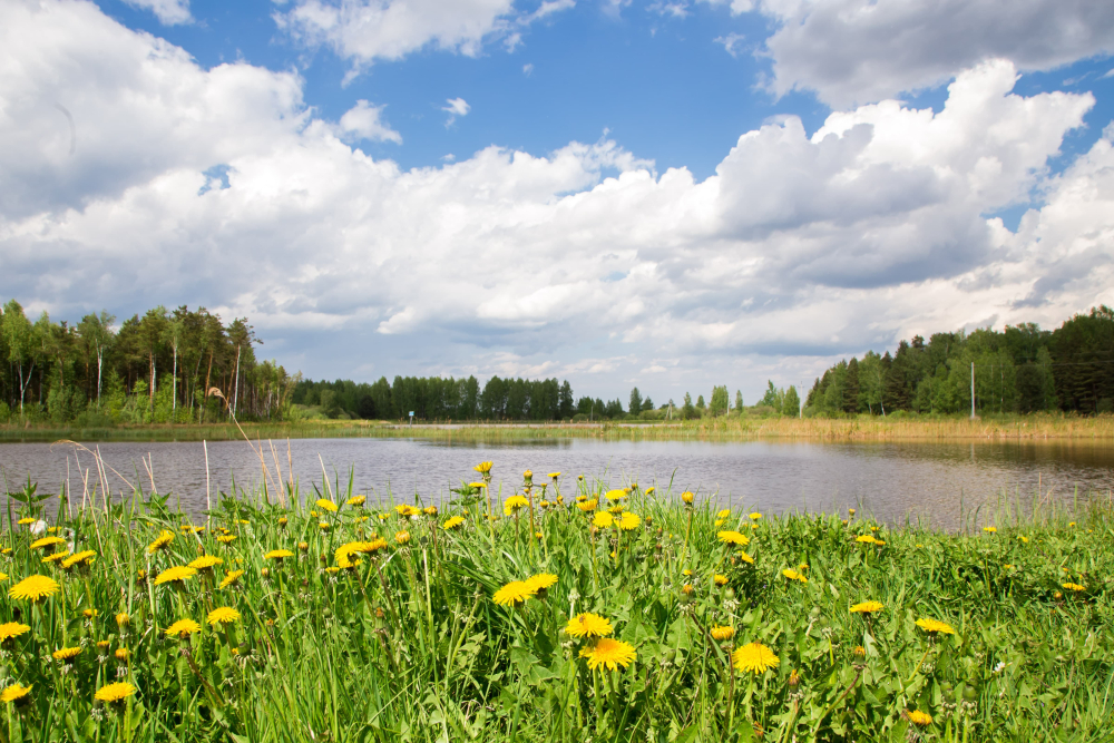 Панорама озера и лесной массив создают атмосферу уюта и гармонии с природой.