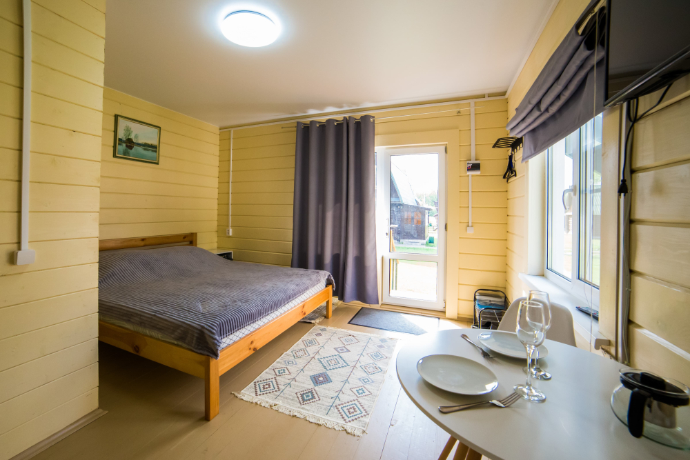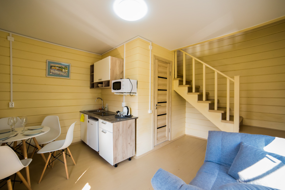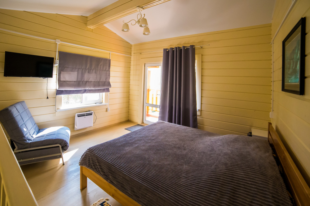 - Коттеджи: Уютные дома для семейного отдыха или компании друзей.