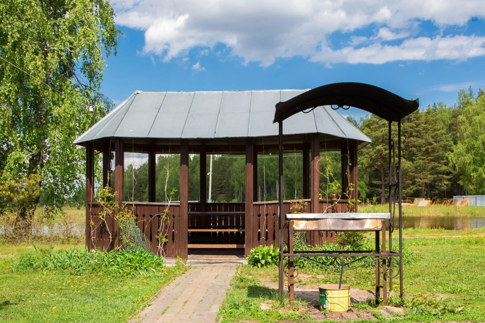 - Беседки: Для компаний от 6 до 40 человек, с мангалом в комплекте.