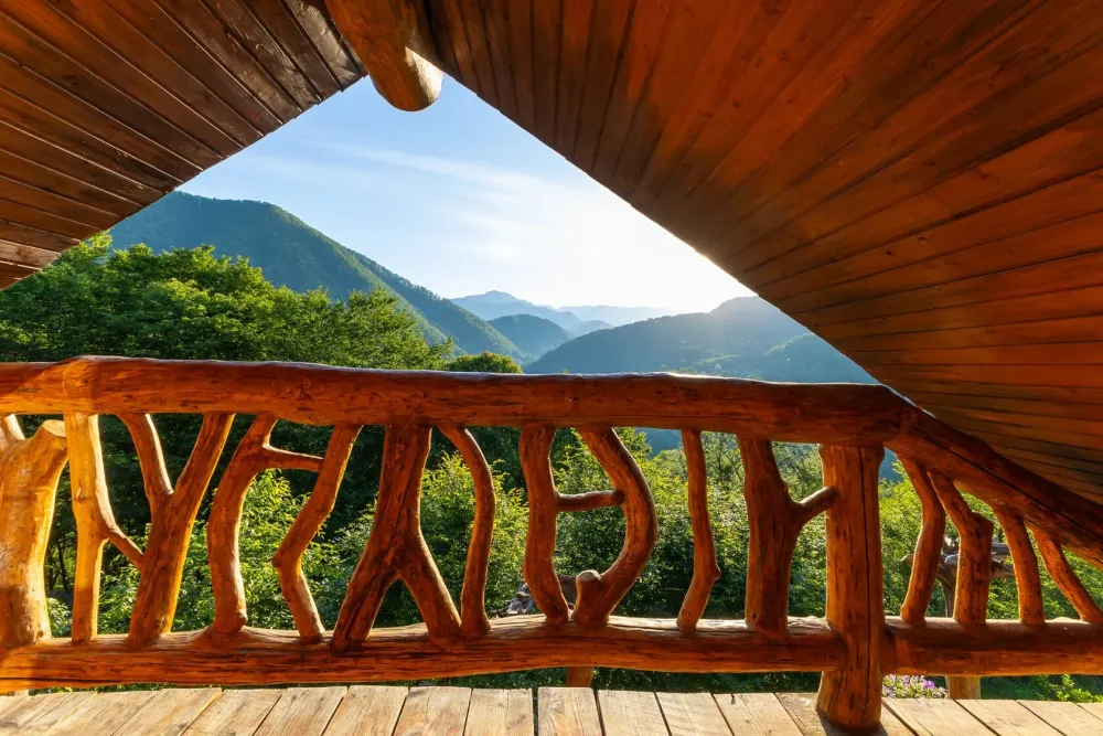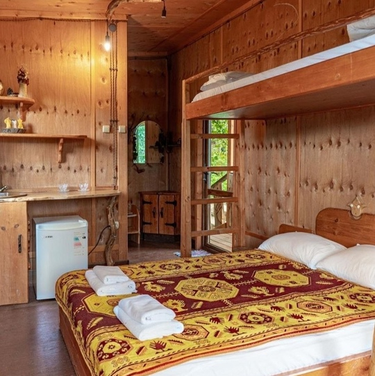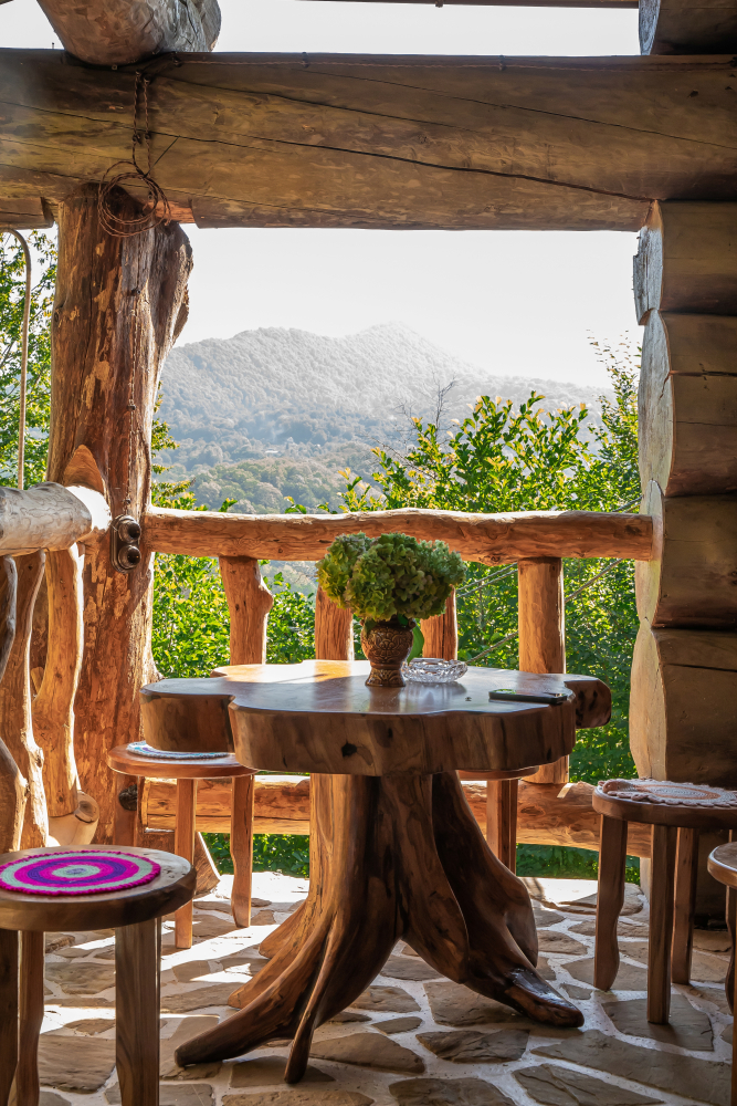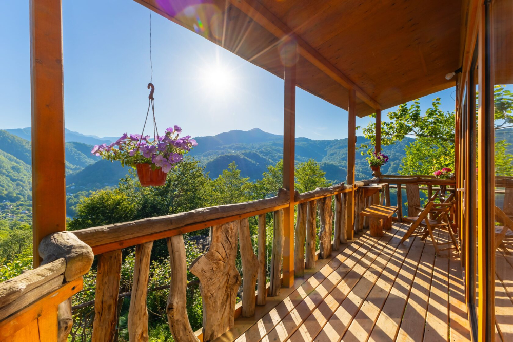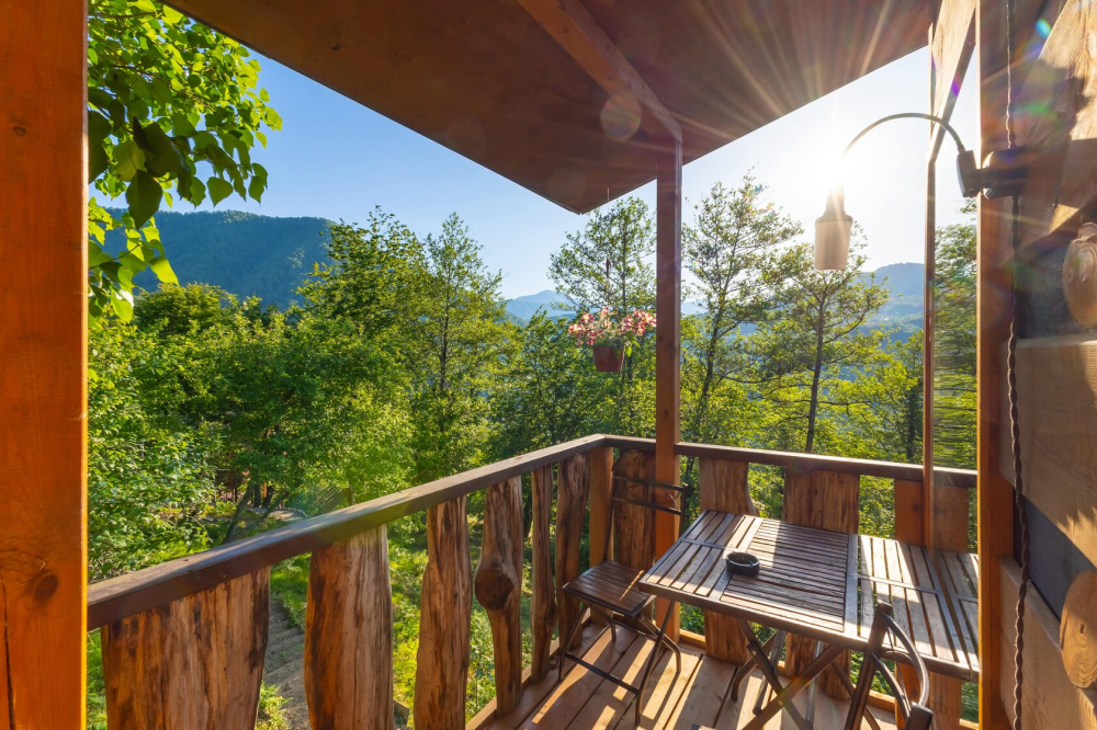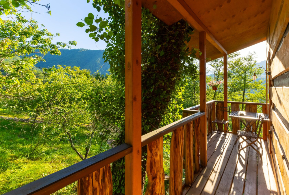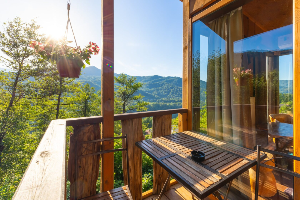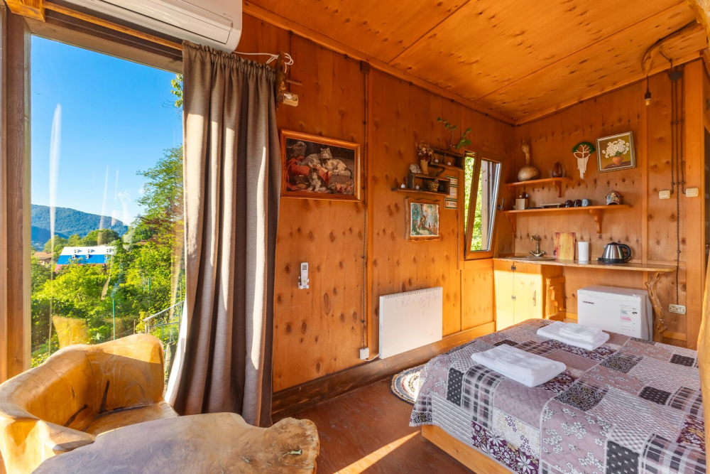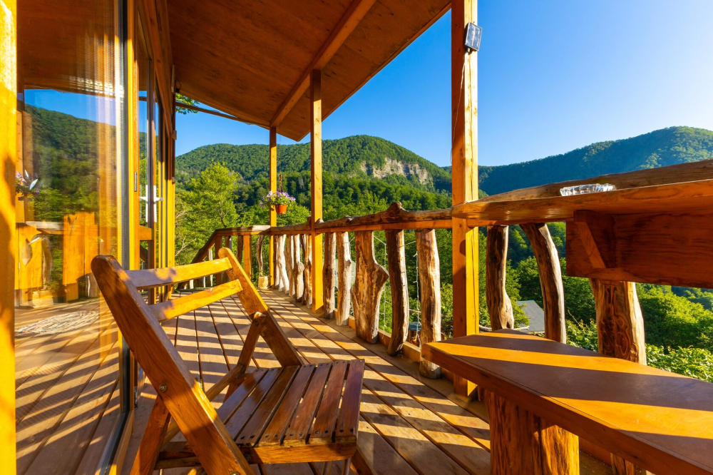- 5 уникальных домов с авторской мебелью ручной работы, каждый с собственной террасой и панорамным видом на горы.