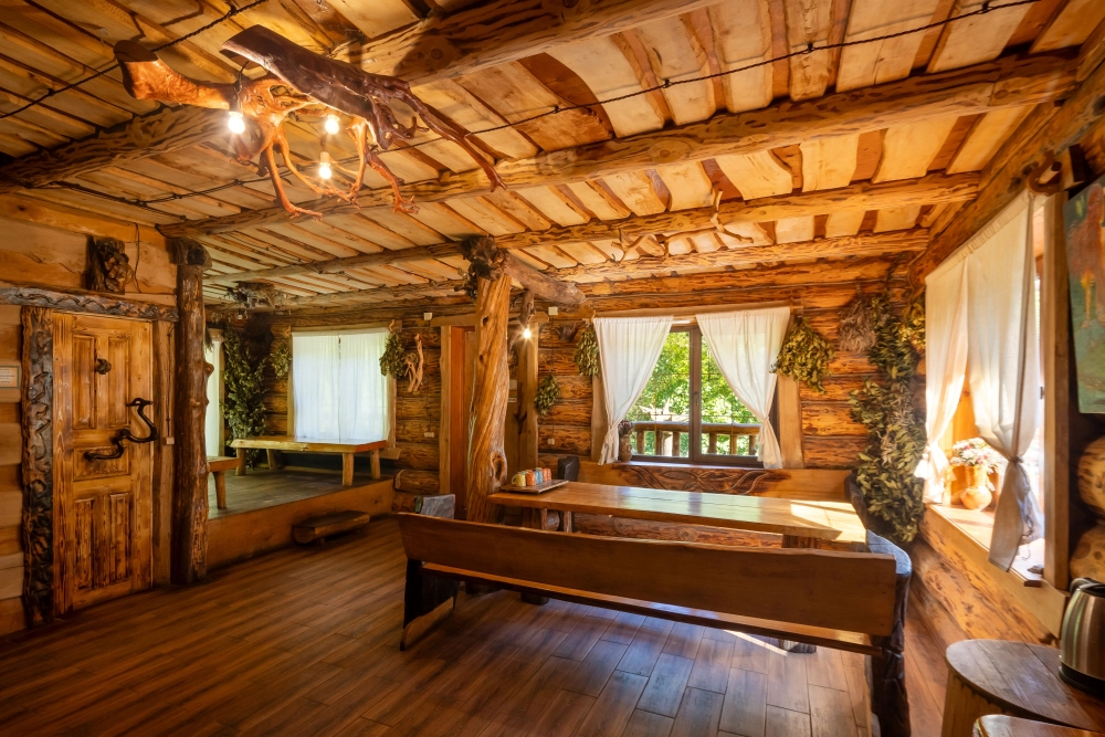 - Аутентичная русская баня на дровах из сруба с парной (сухой и влажный пар), купелью с родниковой водой и горячим чаном с ароматными травами.