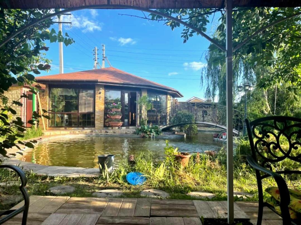 - Пруд с уютным мостиком;