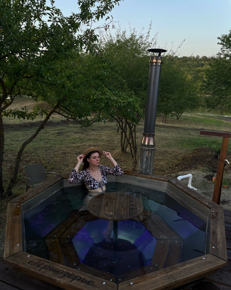 - Сибирский чан: традиционная русская купель под открытым небом, подогрев до 35-45°C, вместимость до 6 человек, оплачивается отдельно.