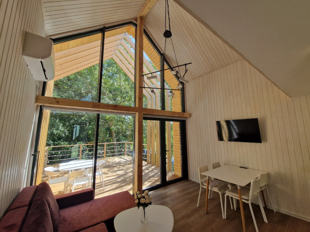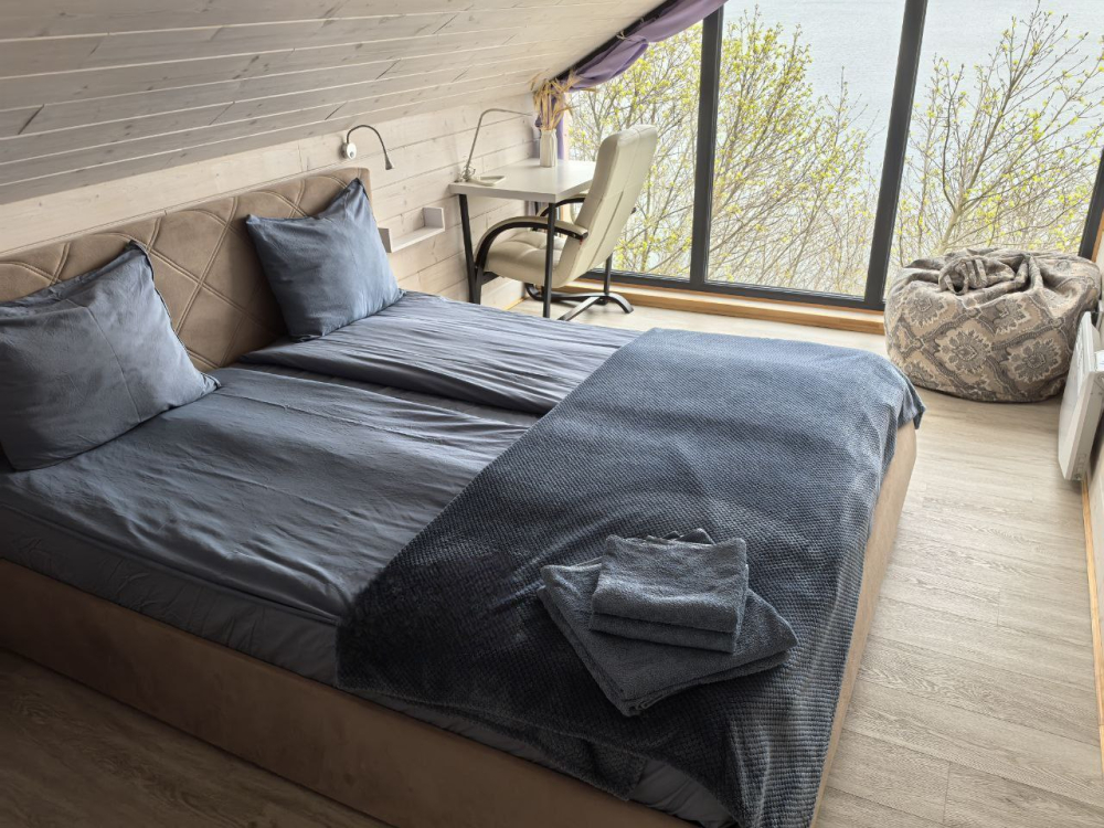 - Дополнительно: панорамные окна с видом на озеро, терраса для отдыха, гладильные принадлежности, постельное белье