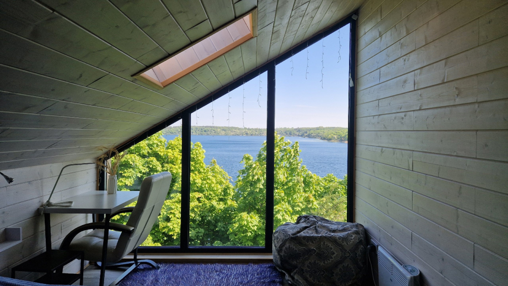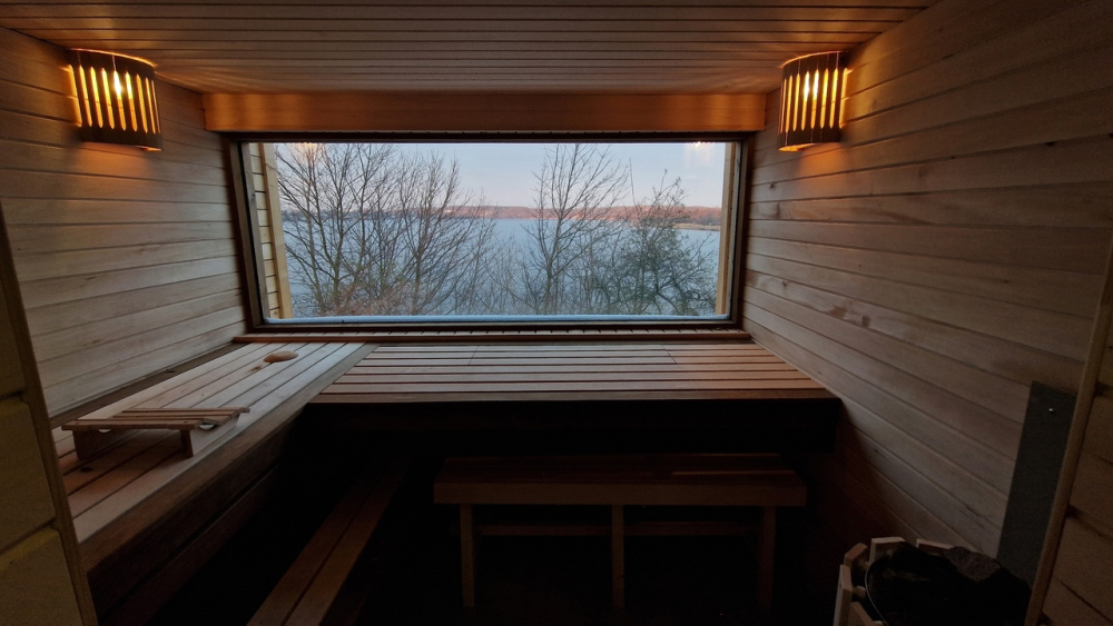 Сауна электрическая с панормным видом на озеро.
