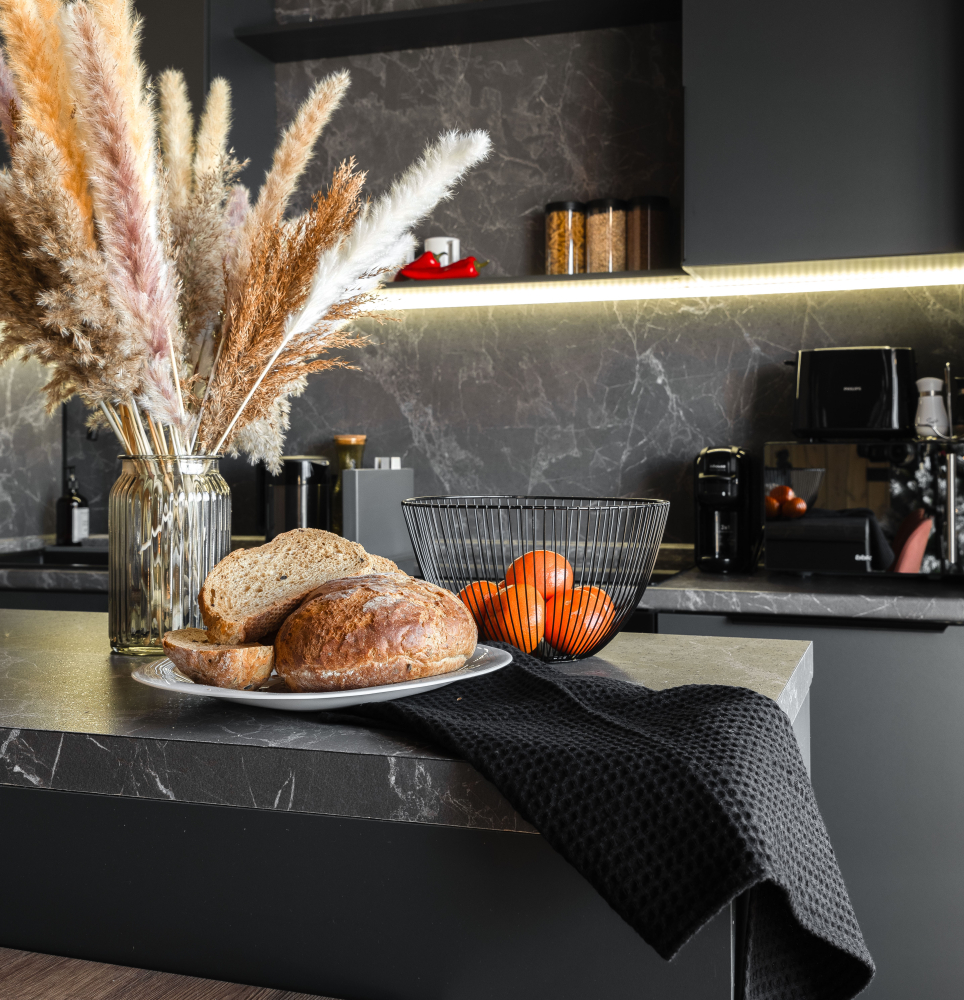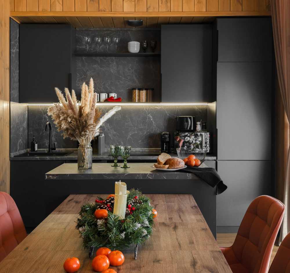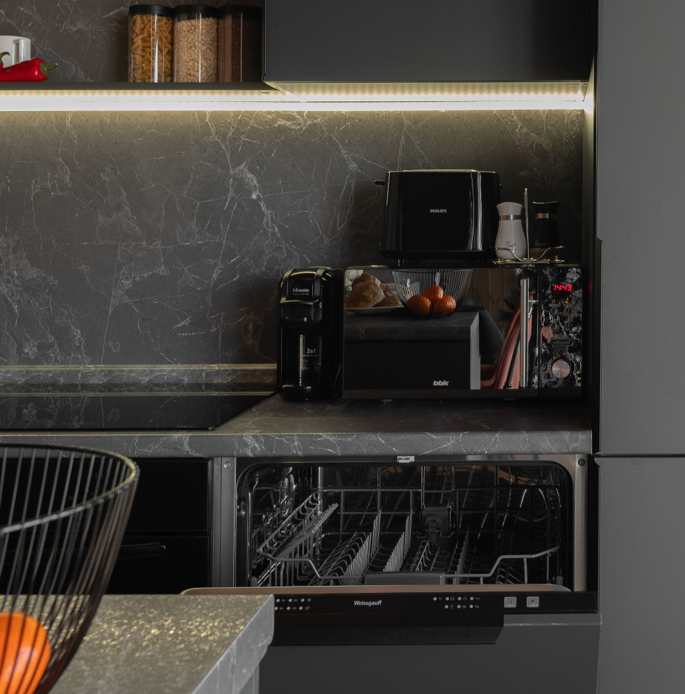 ⦁ Полностью оборудованная кухня (духовой шкаф, варочная панель, холодильник, микроволновка, посудомоечная машина, посуда, столовые приборы)