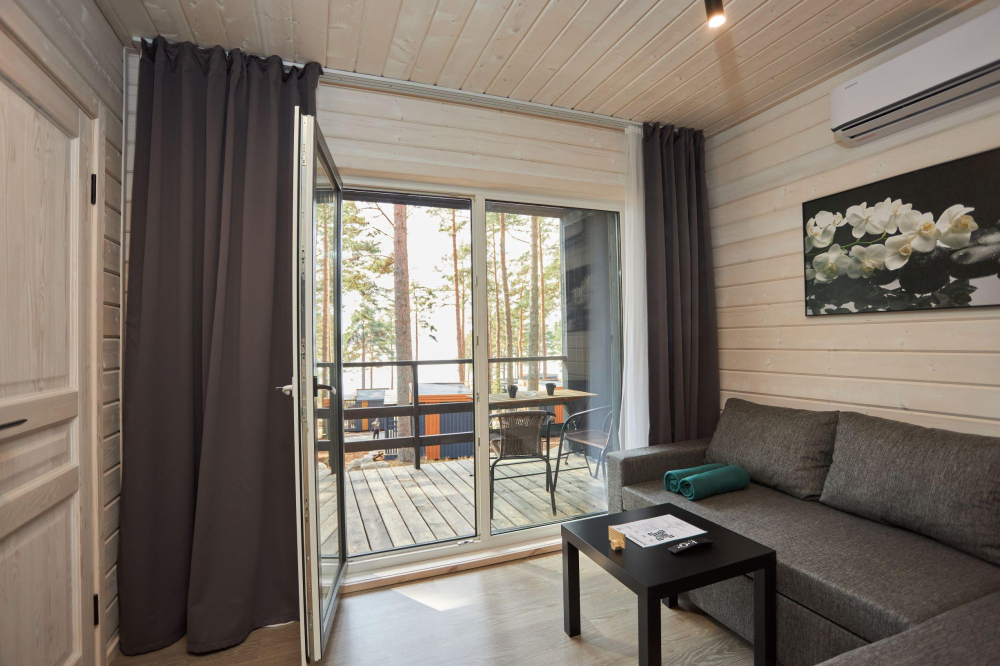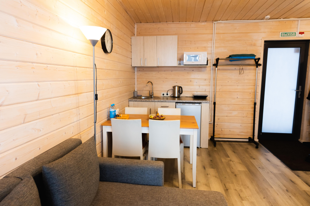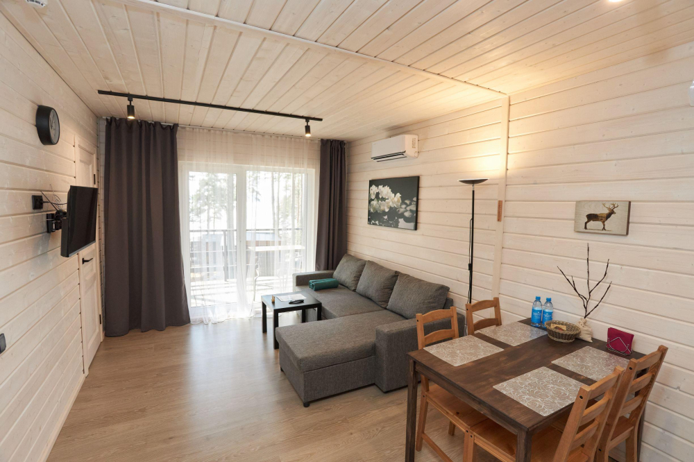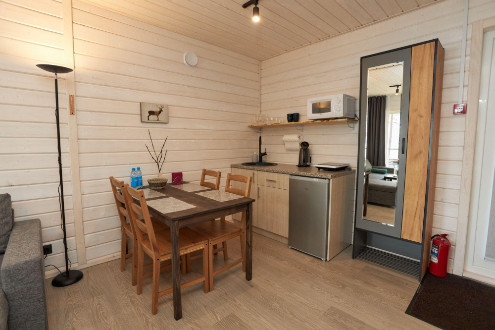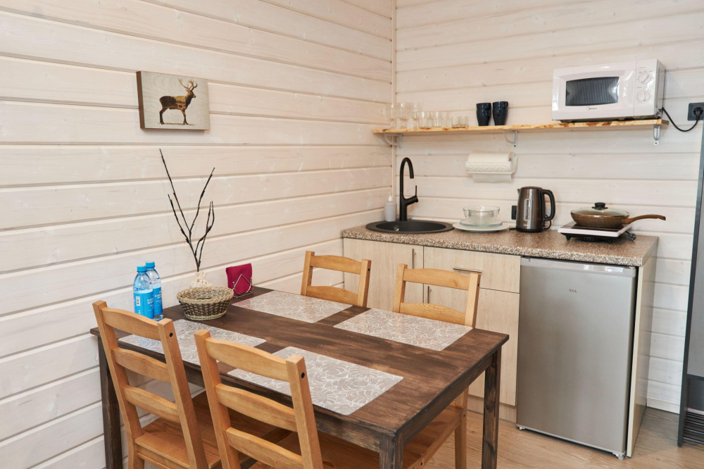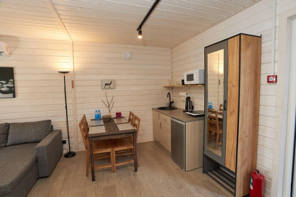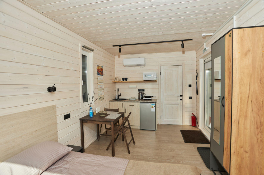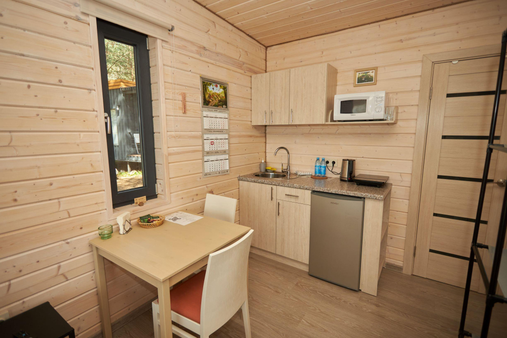 17 домиков трёх категорий, каждый из которых оснащён всем необходимым для комфортного отдыха: