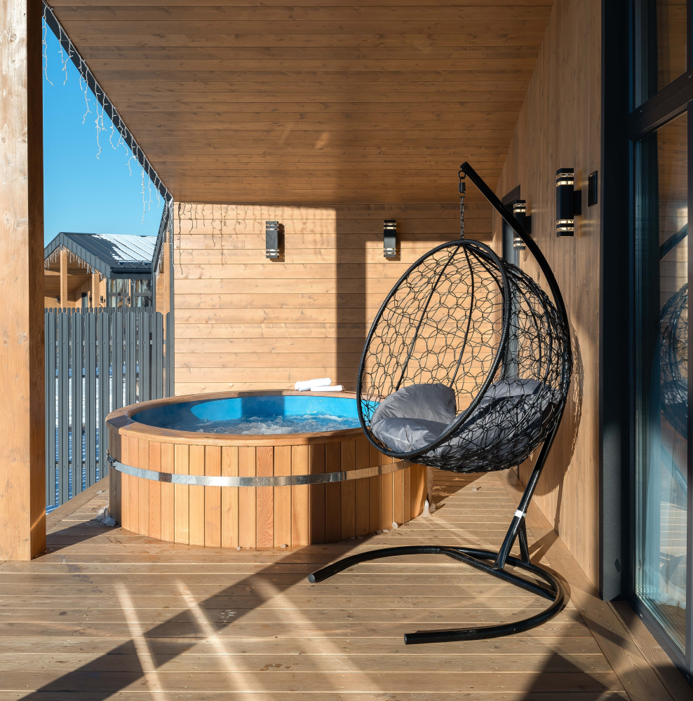 ⦁ Веранда с садовой мебелью и купелью