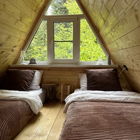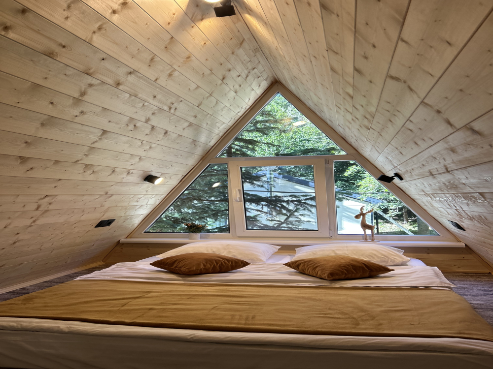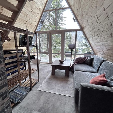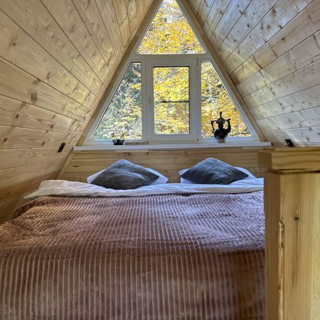 Мы предлагаем 5 уютных домов: 4 А-фрейма (до 5 гостей) и 1 шале (до 6 гостей).