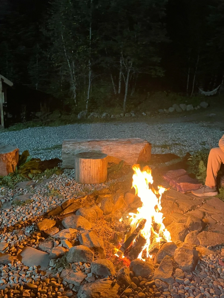 Костровая зона есть около домиков шале, А-фрейм 4.