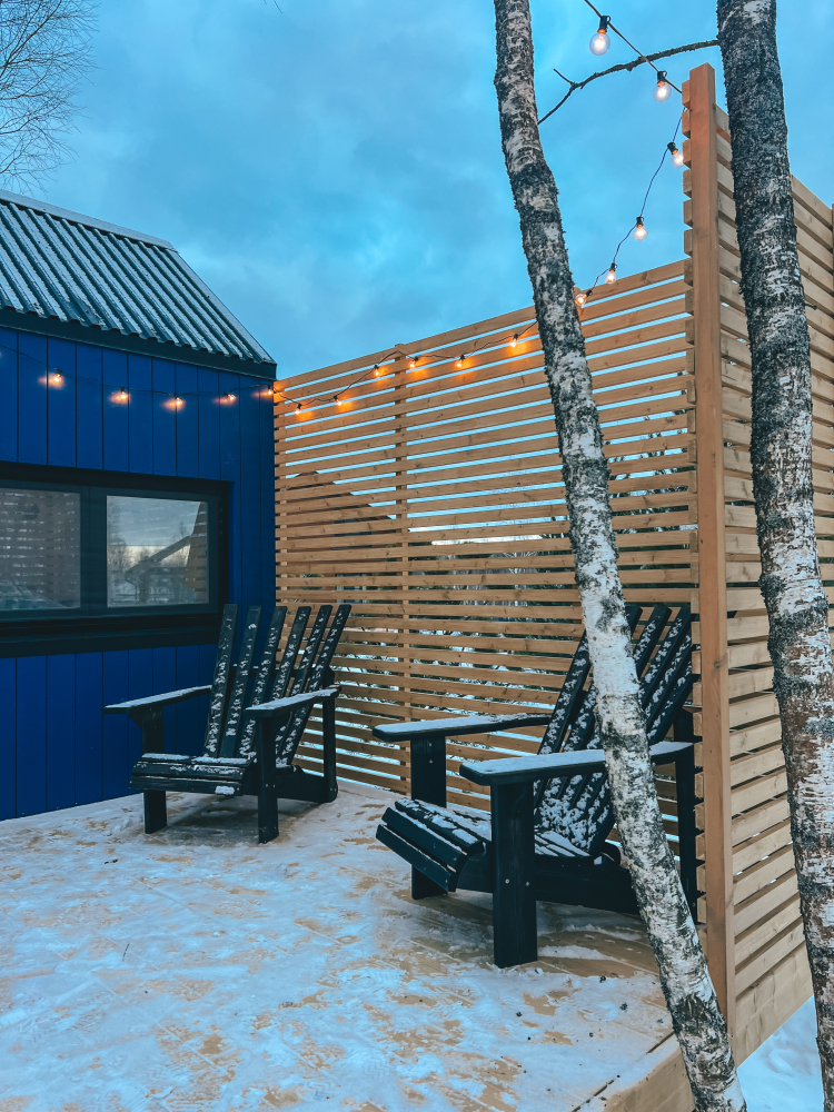 - Открытая веранда с зоной отдыха (удобные кресла)