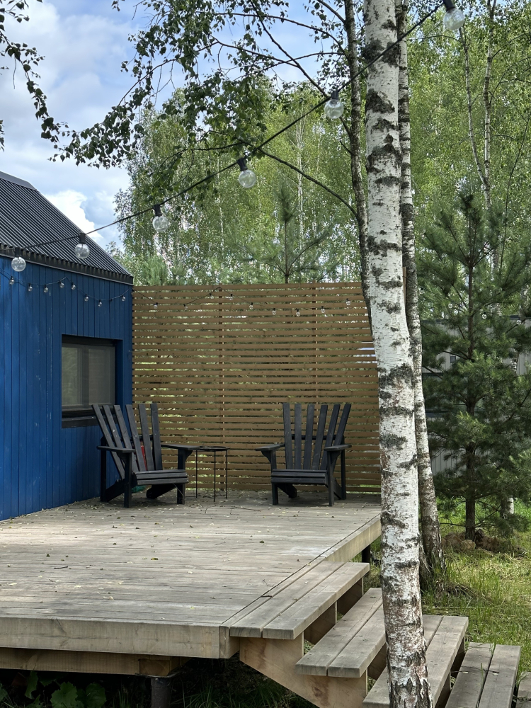 - Мангальная зона и уютная костровая зона, удобные кресла и подсветка дома ретро-лампочками