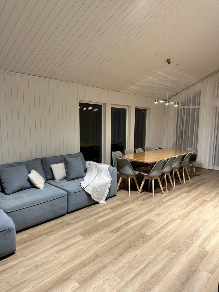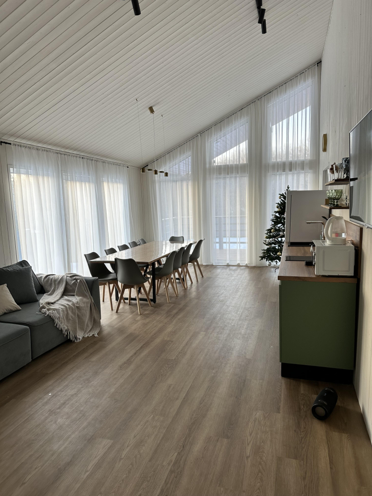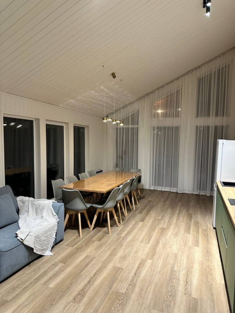 - Большой обеденный стол на 12 человек с панорамным видом.