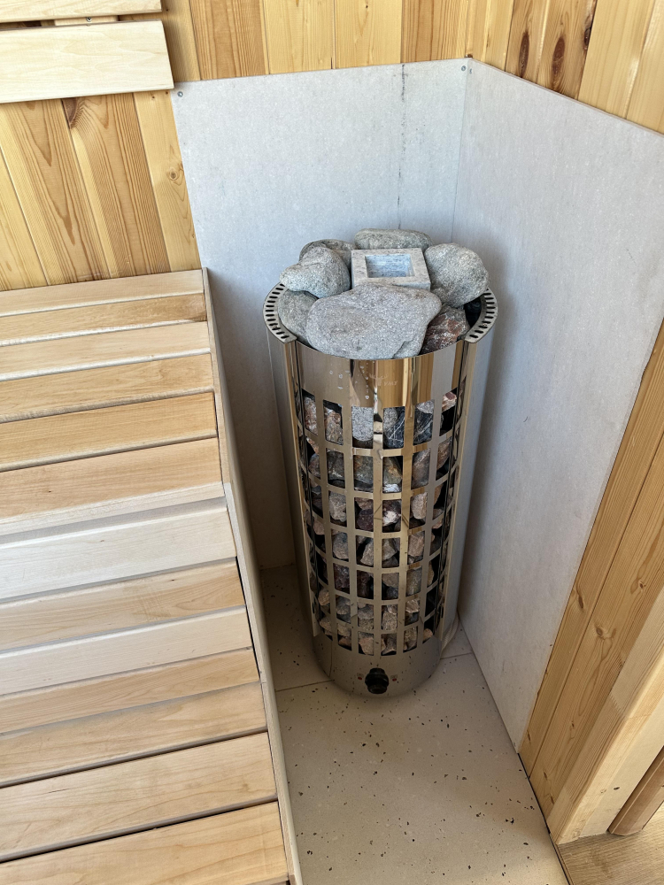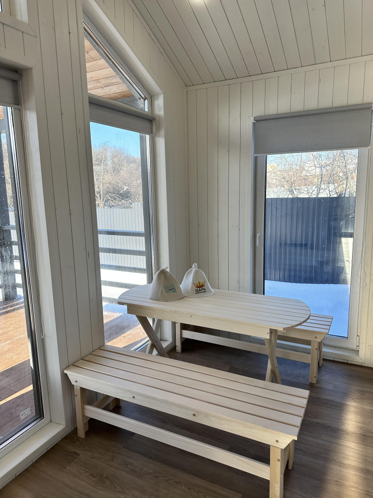 Сауна находится прямо в доме: не нужно одеваться и куда-то идти. Сауна, комната отдыха с небольшим столом и душ все расположено в одной зоне.Cтоимость 3000 рублей, стоимость за 3 часа, свыше 1000 рублей в час