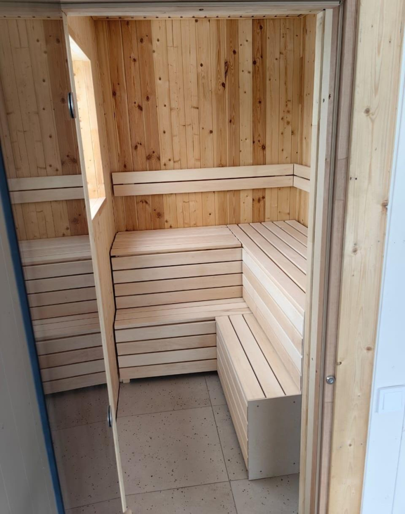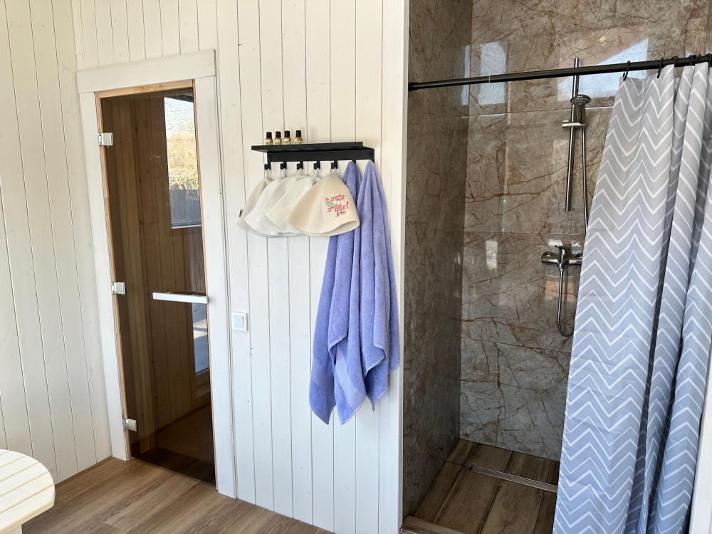 - Сауна: Расположена внутри дома, с комнатой отдыха и душем.