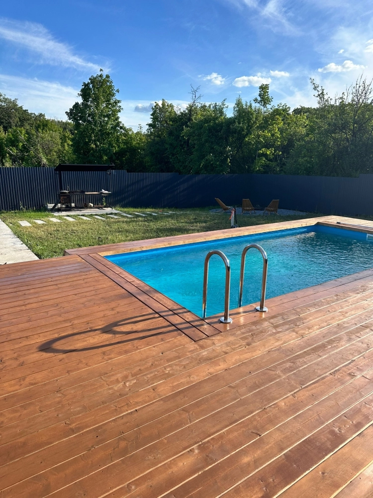 - Большой открытый бассейн: Размером 3х6 м, с подогревом, работает с апреля по октябрь (включено в стоимость).